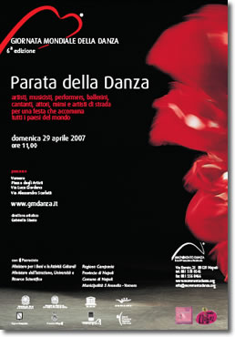 Domenica 29 aprile, con la PARATA DELLA DANZA e molto di più, che attraverserà le strade di Napoli, Movimento Danza (Ente di Promozione Nazionale riconosciuto dal Ministero per i Beni e le Attività Culturali e dall'Unione Europea, nonché membro dell'International Dance Council - UNESCO) festeggia anche quest'anno la Giornata Mondiale della Danza, ideata 25 anni fa dall'UNESCO. Una giornata che accomuna tutti i paesi del mondo e che grazie a Movimento Danza, da sei anni, è diventata per l'Italia e Napoli un grande evento.