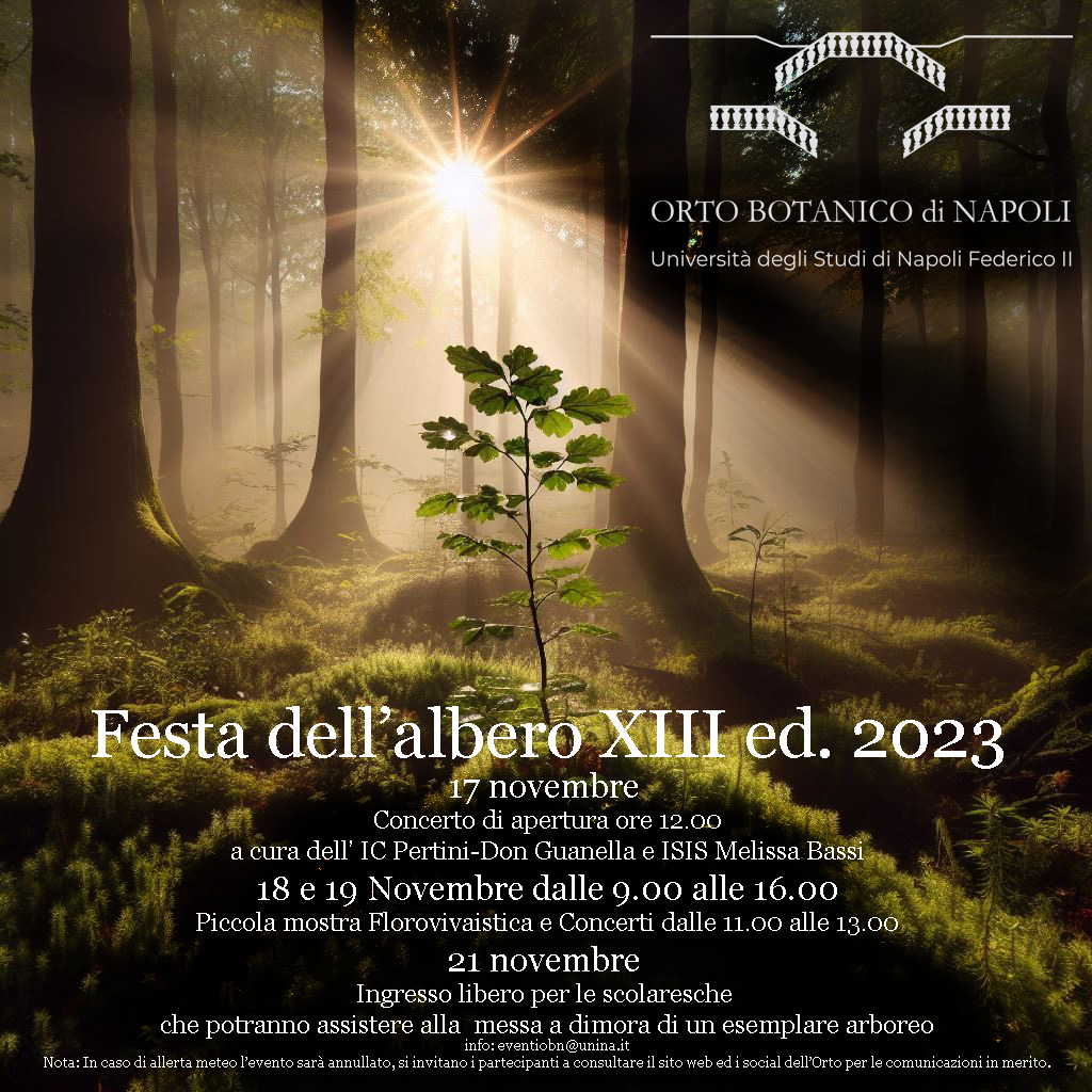 La Festa dell’Albero, giunta alla sua XIII edizione, si terrà nei giorni 17, 18, 19 e 21 novembre nei viali dell’Orto Botanico di Napoli.