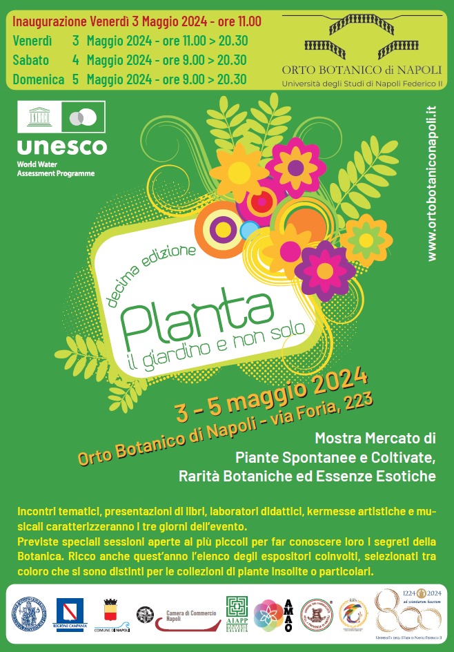 Da venerdì 3 a domenica 5 maggio 2024 torna all’Orto Botanico di Napoli “Planta, il giardino e non solo”, la Mostra Mercato dedicata al florovivaismo di qualità, giunta alla sua X edizione.Organizzata in collaborazione con prestigiose aziende vivaistiche specializzate, la mostra si propone di offrire al pubblico un'ampia panoramica sulle ultime tendenze nel mondo del florovivaismo, presentando una vasta gamma di piante e accessori per il giardino. Tra le principali caratteristiche di questa edizione spicca l'impegno delle aziende partecipanti nel promuovere la sostenibilità ambientale e il rispetto per l’ambiente. Attraverso iniziative specifiche e progetti green, Planta mira a sensibilizzare il pubblico sulla necessità di preservare e valorizzare il patrimonio naturale.