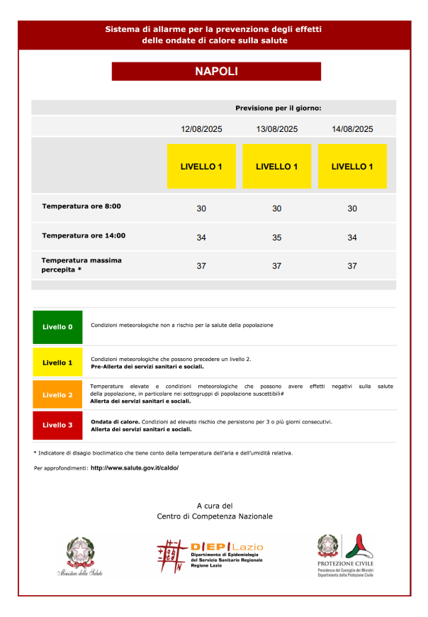 Avviso ondate di calore - Bollettino Min. Salute dell'11/09/2025