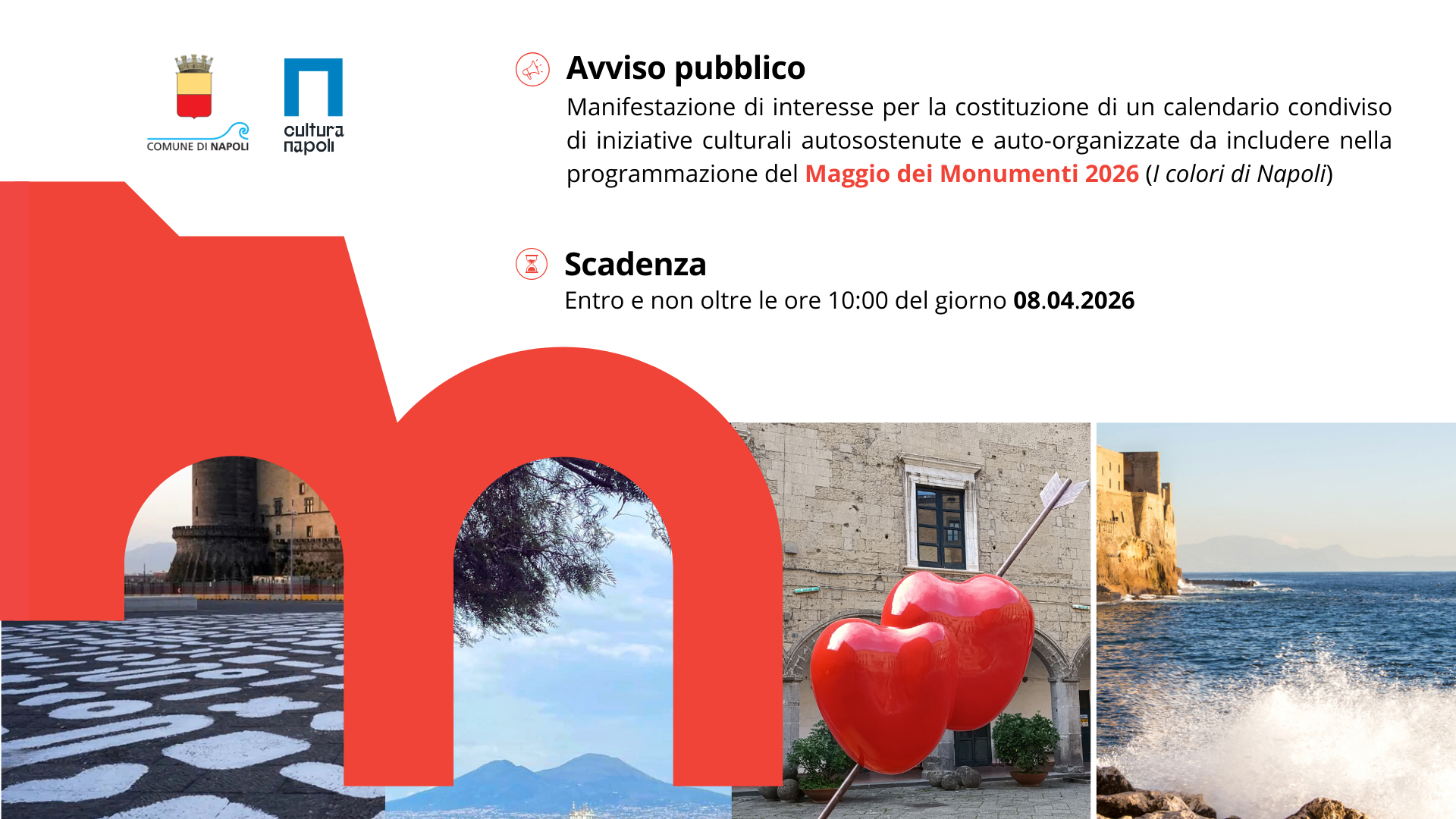 Con il presente Avviso, il Comune di Napoli intende acquisire proposte di iniziative culturali da includere nel programma del “Maggio dei Monumenti” 2026, che dovranno svolgersi dal  2 maggio al 2 giugno 2026.