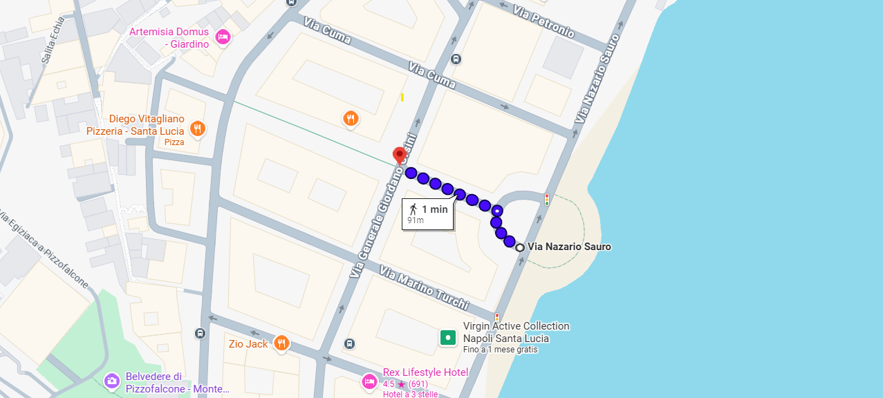 Dal 16 giugno al 21 settembre 2025 è previsto un dispositivo temporaneo di circolazione in via Nazario Sauro, in via Generale Giordano Orsini e strade limitrofe per i lavori di riqualificazione ciclo pedonale del lungomare di Napoli.È istituito:1. il divieto di transito veicolare in via Nazario Sauro, eccetto i veicoli diretti al garage autorizzato nel tratto compreso tra via Mario Turchi e via Raffaele de Cesare, con accesso/uscita mediante corsia protetta da via Mario Turchi;