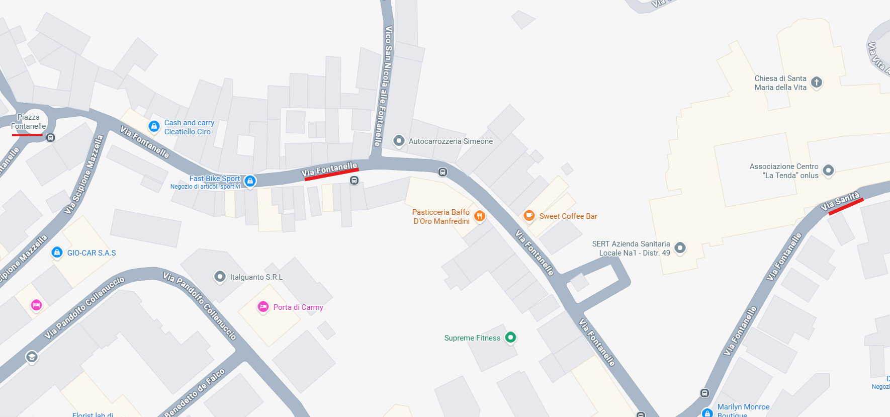 • tratto di via Fontanelle compreso tra la confluenza con via Sanità e la confluenza con piazza Fontanelle;