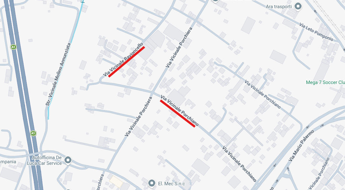 • in via Vicinale Ravioncello, nel tratto di strada compreso tra intersezione con via Porchiera e il palo luce n. 251-037, il divieto di transito veicolare, esclusi i mezzi di cantiere, nella fascia oraria dalle ore 9:00 alle ore 18:00, dal 27 al 29 aprile 2026, e comunque durante l’esecuzione dei lavori.