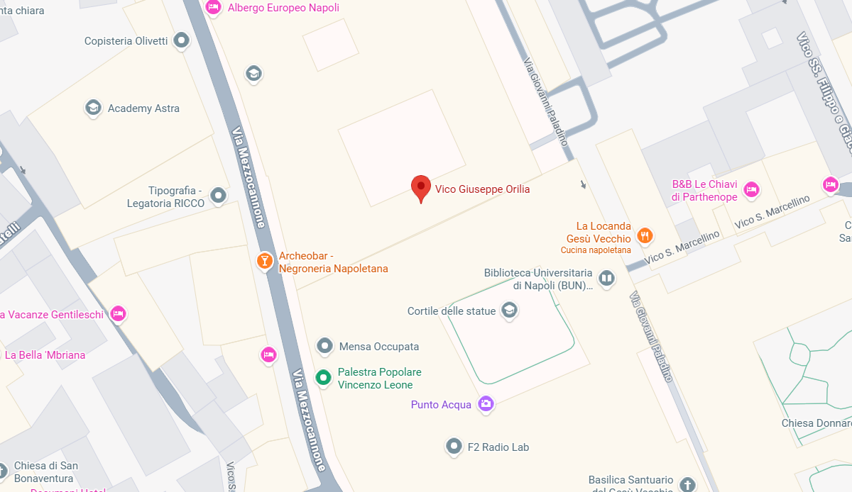 È istituito, dal 21 aprile 2026 al 20 aprile 2027, in vico Giuseppe Orilia, il divieto di transito pedonale, per l’intera estensione della strada, al fine di consentire i lavori di restauro e di riorganizzazione funzionale del complesso di via Mezzocannone n. 16 (ex Convento di Donnaromita) - Università degli Studi di Napoli “Federico II.