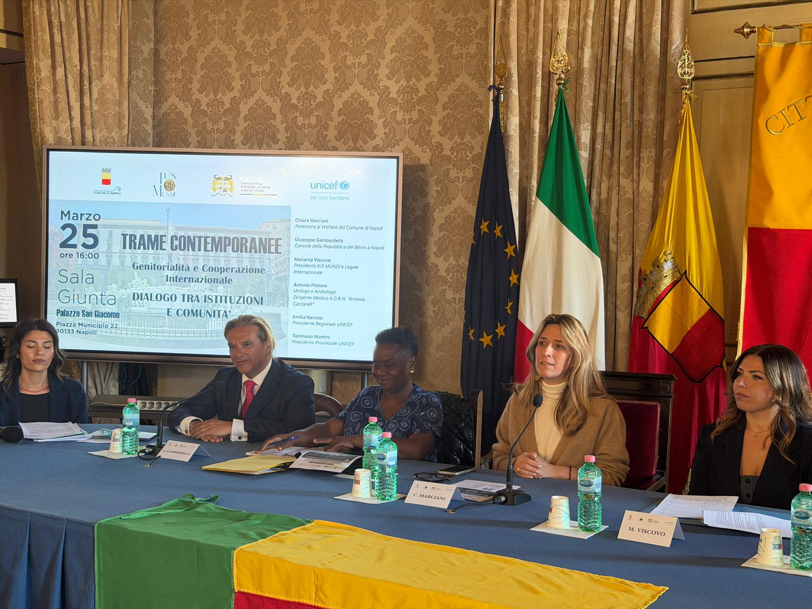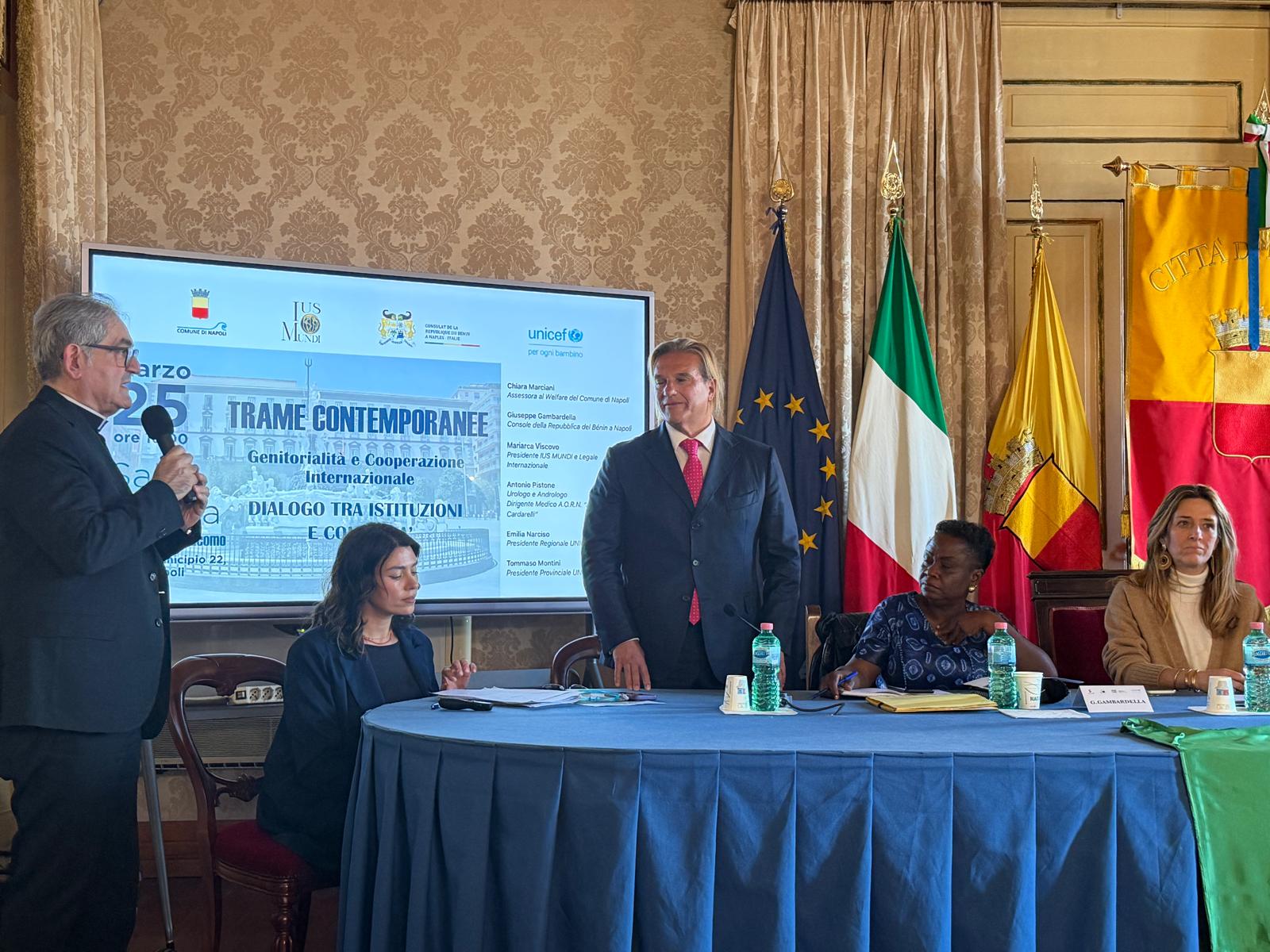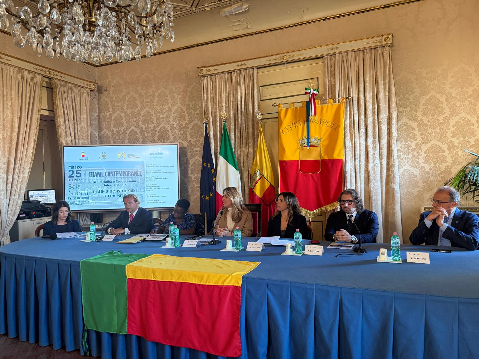 Le trasformazioni sociali pongono nuove sfide che le giovani generazioni devono affrontare nella costruzione del proprio progetto di vita, e anche il concetto di genitorialità ne risente inevitabilmente. Di questi temi si è discusso oggi durante l’iniziativa “Trame Contemporanee – Genitorialità e Cooperazione Internazionale. Dialogo tra istituzioni e comunità”, che si è svolta nella Sala Giunta di Palazzo San Giacomo. L’incontro, promosso dall’associazione Ius Mundi in collaborazione con il Consolato della Repubblica del Bénin a Napoli e con il patrocinio del Comune di Napoli e dell’Unicef, ha offerto uno spazio di dialogo tra istituzioni, esperti del settore sociale e sanitario, rappresentanti del mondo della cooperazione internazionale e della società civile.
