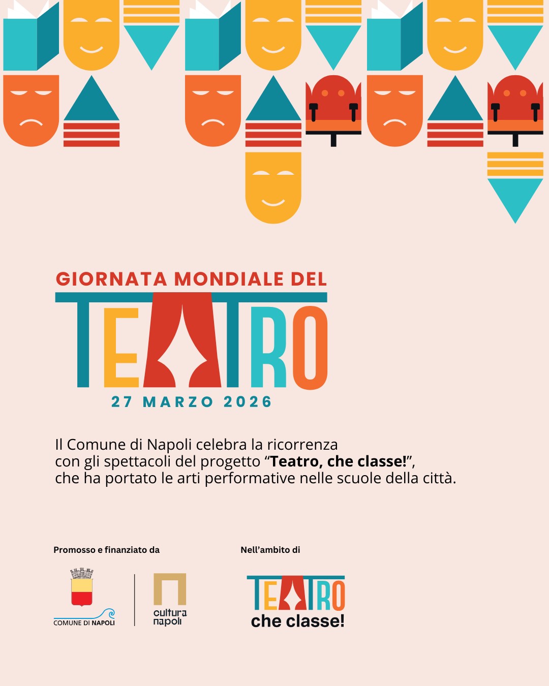 In occasione della Giornata Mondiale del Teatro, che ricorre ogni anno il 27 marzo, il Comune di Napoli promuove sette eventi speciali, tra spettacoli, performance site-specific e momenti di dibattito civile, nell’ambito del progetto “Cultura, che classe!”, che coinvolge gli istituti cittadini di ogni ordine e grado nell’anno scolastico in corso. Le iniziative arrivano a conclusione di un percorso sviluppatosi in piena coerenza con gli obiettivi per cui le Nazioni Unite e l’UNESCO sostengono da più di sessant’anni le celebrazioni del 27 marzo: sensibilizzare l’opinione pubblica sull’importanza dell’espressione teatrale e sostenere lo sviluppo delle arti performative.