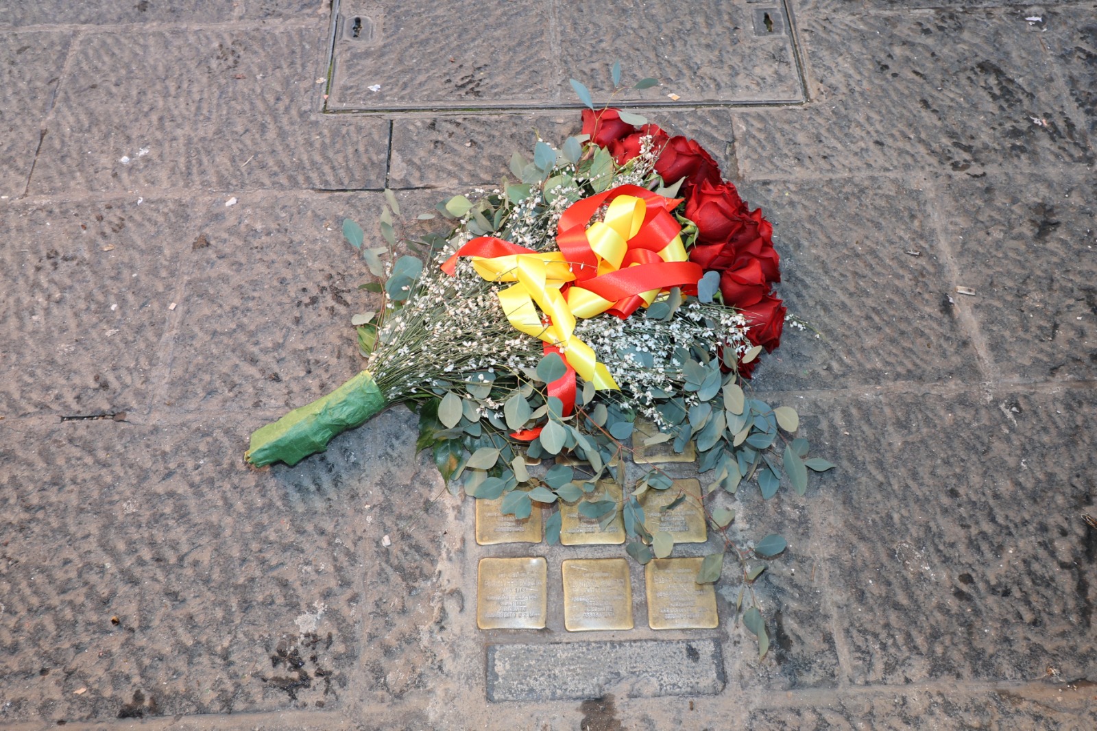 Altri fiori sono stati deposti in piazza Bovio, accanto alle pietre d’inciampo sulle quali sono riportati i nomi delle vittime della Shoah.