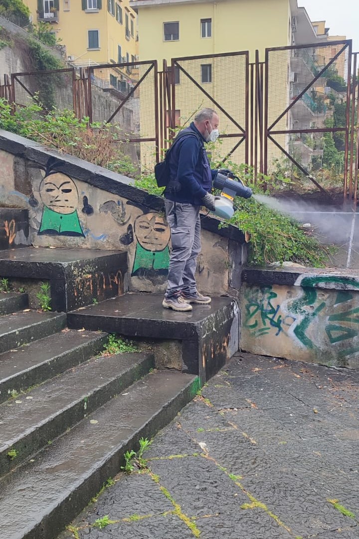 Effettuato nella mattinata odierna un intervento di pulizia e sanificazione della scala monumentale di Montesanto, uno dei collegamenti pedonali più caratteristici della città.