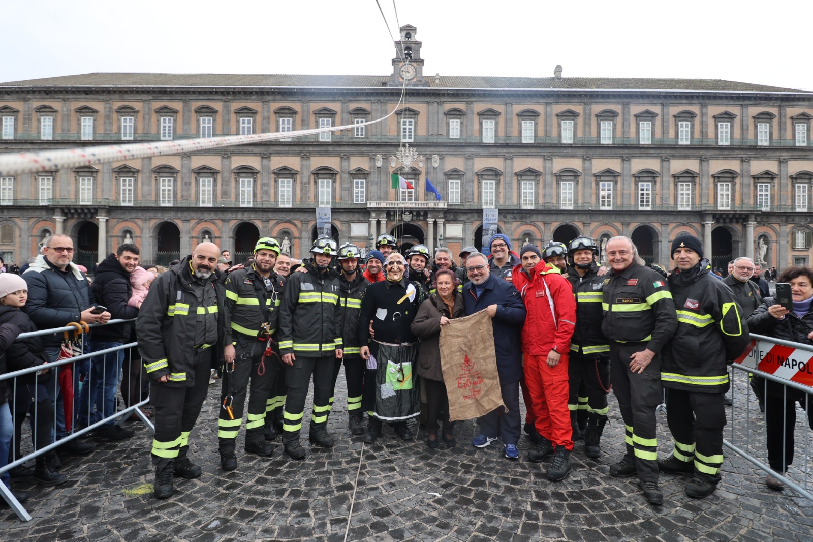 La Befana dei Vigili del Fuoco in Piazza Plebiscito ha chiuso l’ampia programmazione del Natale a Napoli proposta da Turismo e Cultura, con tutte le Municipalità coinvolte in un clima di festa che ha proposto una città piena di eventi e opportunità di scoperta delle nostre tradizioni. L’assessora al Turismo e alle Attività produttive Teresa Armato, insieme alla Befana acrobatica e ai Vigili del Fuoco, ha distribuito le caramelle ai tanti bambini arrivati in piazza. Con lei, il comandante Armando De Rosa, dirigente dell’Ufficio Prevenzione Incendi presso la Direzione regionale dei Vigili del Fuoco della Campania, il consigliere del Comune di Napoli Salvatore Flocco, l’assessore al Turismo della Municipalità 2 Lorenzo Iorio.