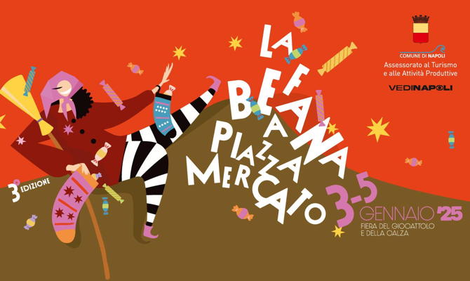 Dopo il grande successo delle prime due edizioni con oltre 20mila presenze, torna l’Epifania a Piazza Mercato – Fiera del Giocattolo e della Calza dal 3 al 5 gennaio, dalle 11.00 a mezzanotte, con cui si conclude il Natale a Napoli, promosso e finanziato dall’Assessorato al Turismo e alle Attività produttive del Comune di Napoli.