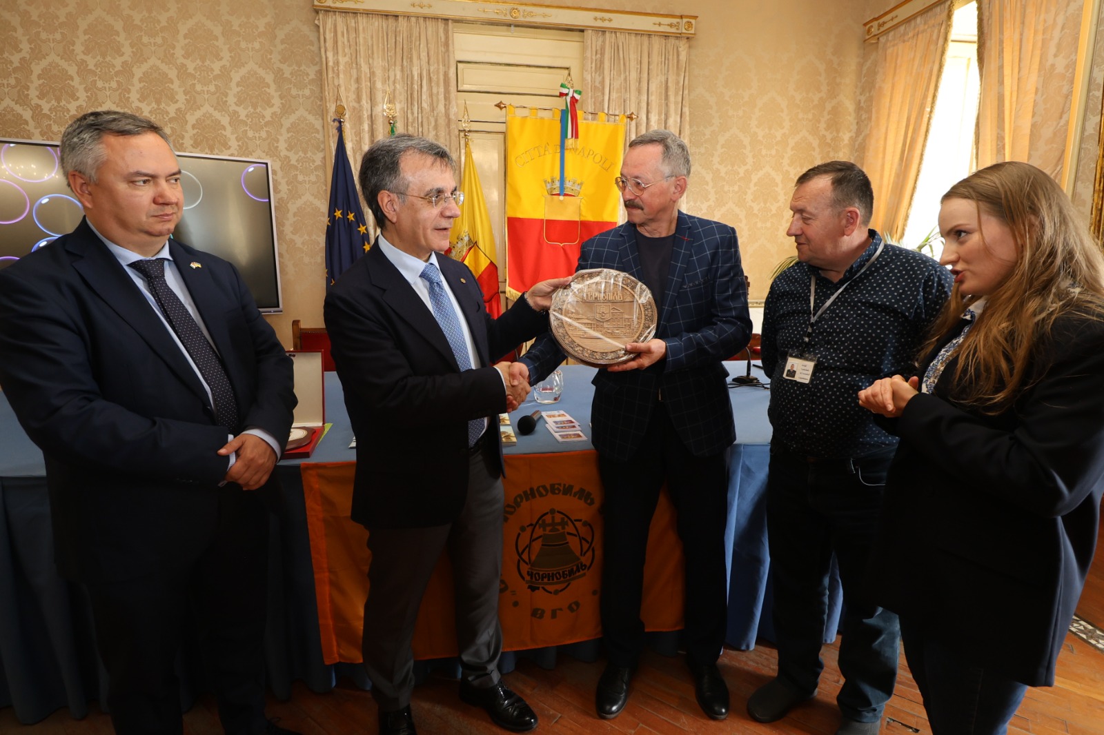 Si tratta di Volodymyr Chartorynskyi (1960), medico e colonnello del servizio medico delle Forze Armate ucraine, che partecipò alle operazioni di liquidazione come terapeuta‑radiologo del Distretto Militare dei Carpazi, e Serhii Vashchuk (1961), ufficiale in congedo delle Forze Armate ucraine, coinvolto nelle attività di decontaminazione con il 39° Reggimento di difesa chimica dello stesso Distretto. Ad entrambi è stato, inoltre, consegnato il crest della città di Napoli, in segno di riconoscenza per il loro servizio e sacrificio.