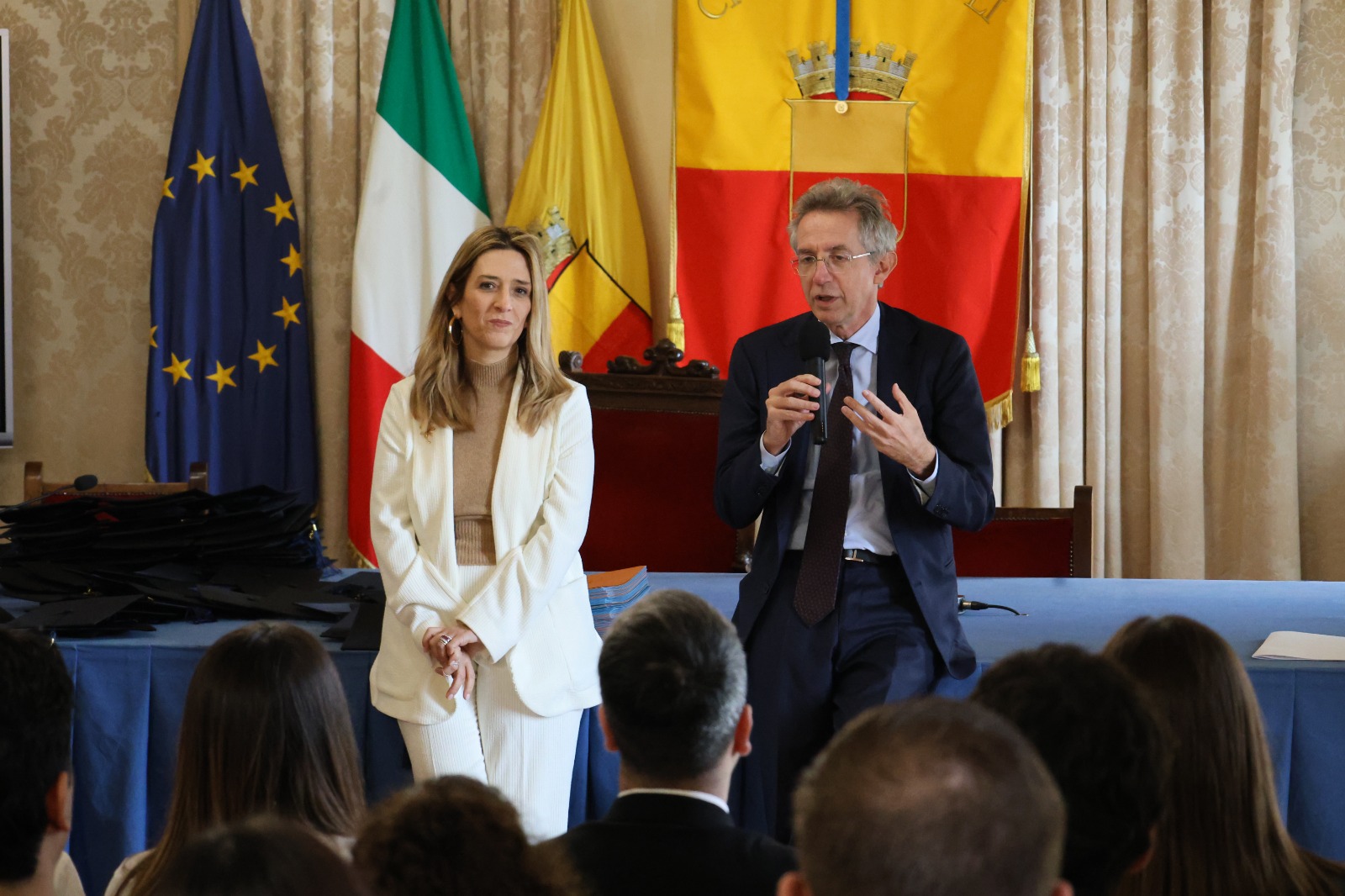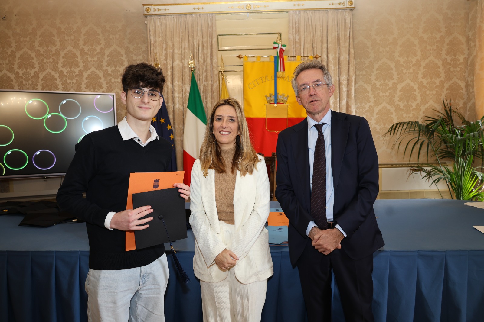“È un grande piacere consegnarvi questo premio perché, più del valore materiale, ha un forte valore simbolico: è il modo attraverso cui la città esprime la sua gratitudine. Siete una grande speranza per il futuro, ma siete investiti anche di una grande responsabilità – ha detto il sindaco Manfredi rivolgendosi ai ragazzi –. Viviamo in una società in cui i cambiamenti sono sempre più veloci. Come riuscire a fronteggiare questo cambiamento? Con le proprie competenze. Voi che siete i più bravi avete anche una grande responsabilità: quella di aiutare la nostra città e la società mettendo a disposizione il vostro talento e il valore dei sacrifici che avete fatto per raggiungere questo risultato. Seguite sempre la vostra testa, ma anche il vostro cuore, perché la passione è il vero motore del cambiamento”.