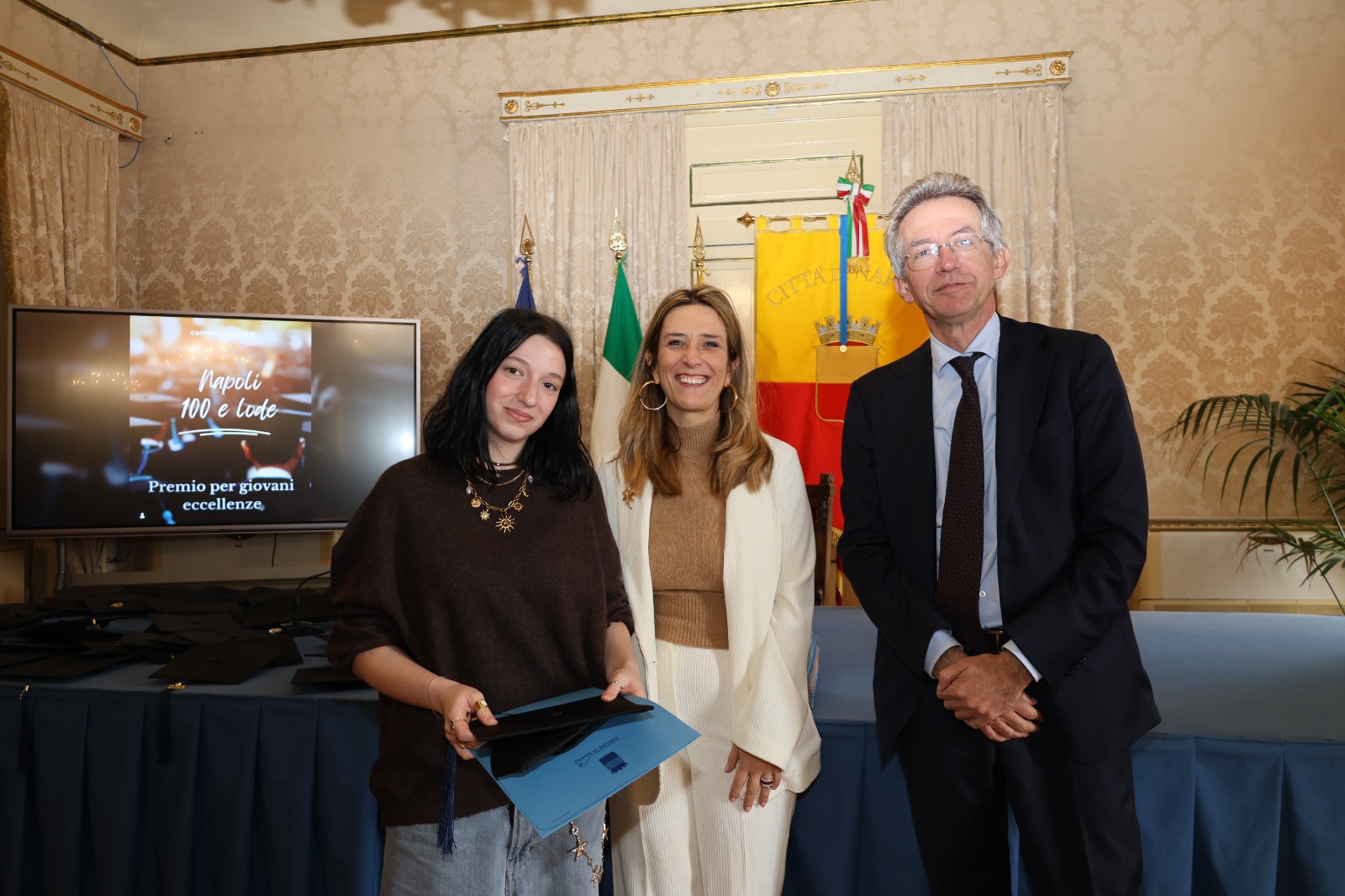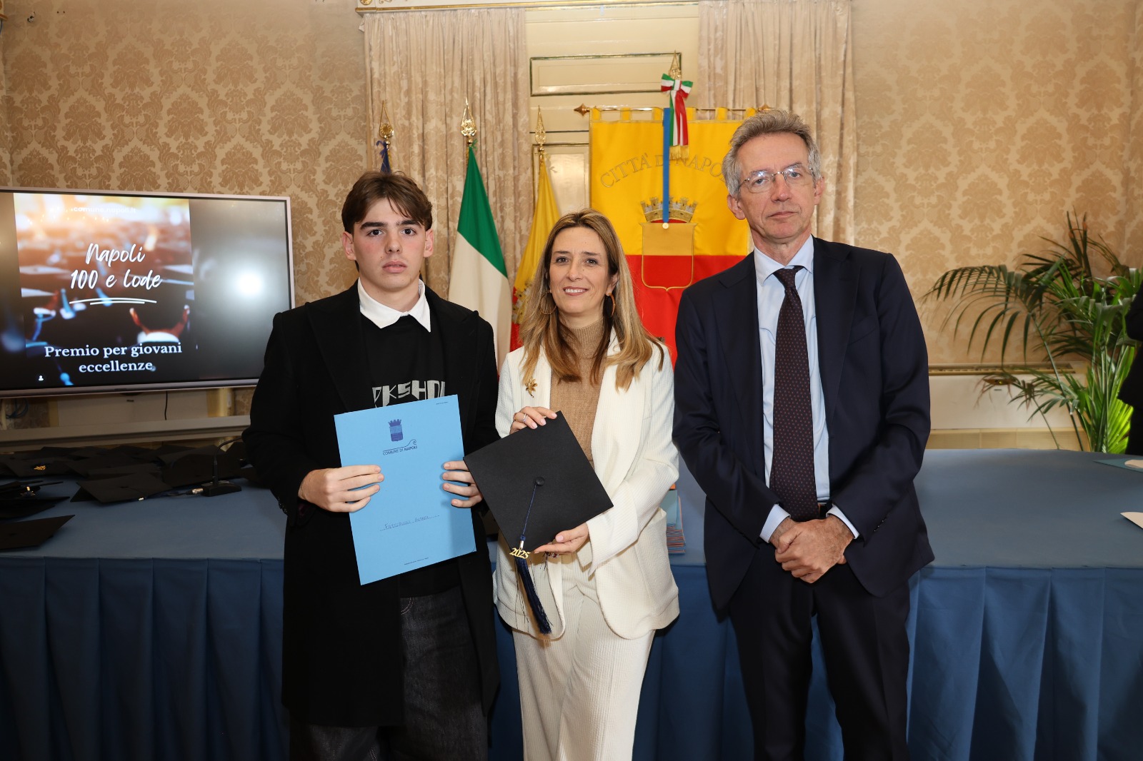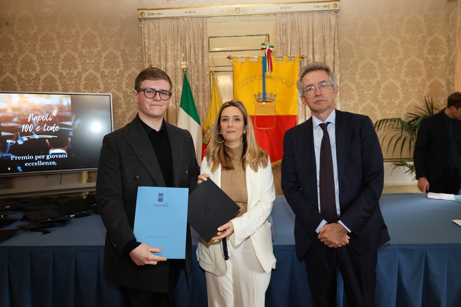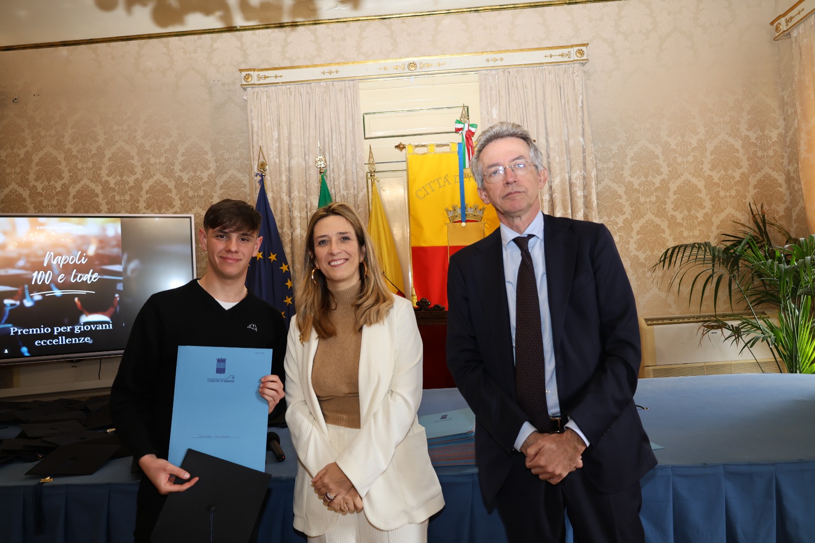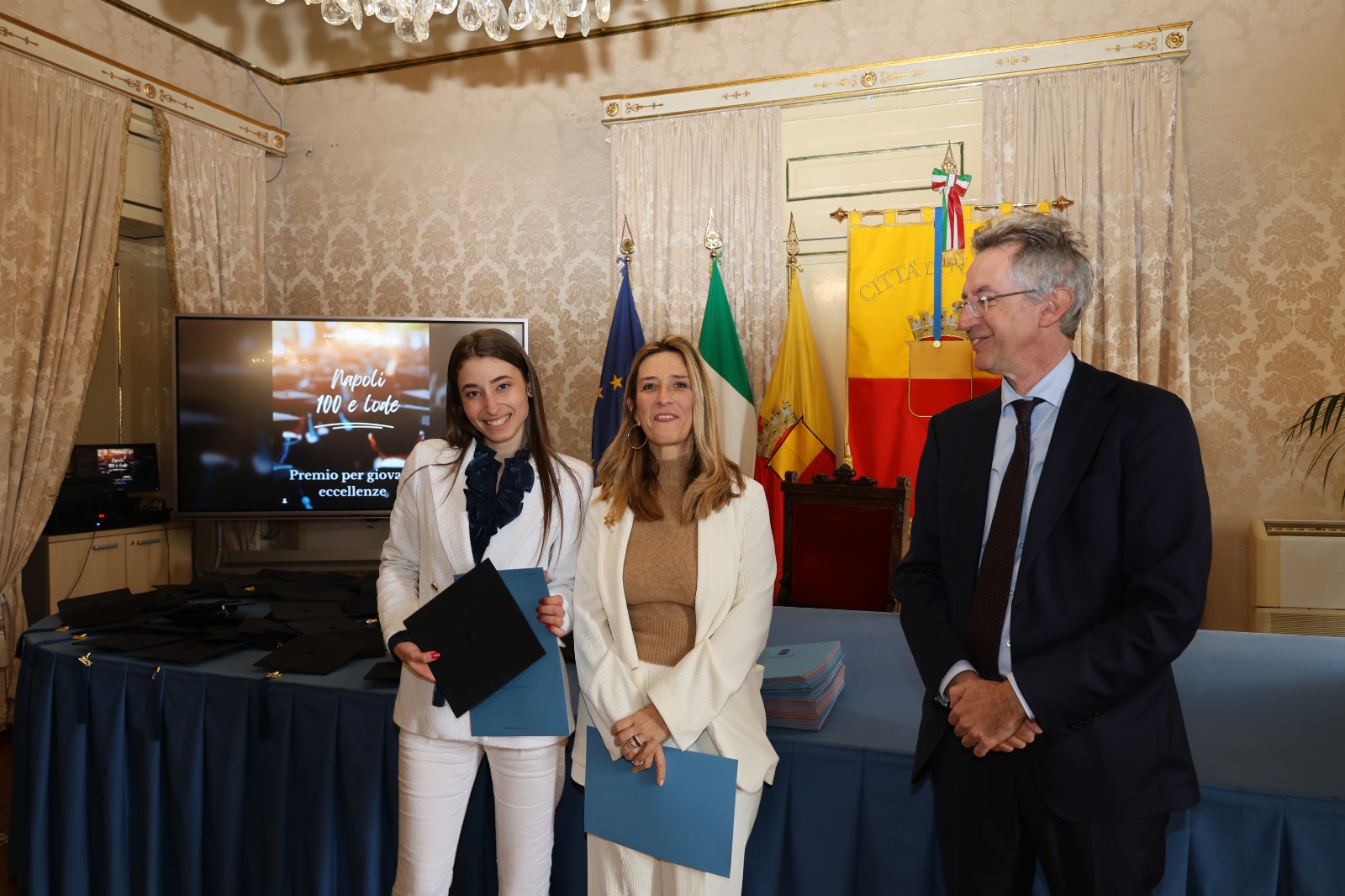 “Oggi non premiamo solo un voto eccellente, ma il sacrificio e la passione di una generazione che rappresenta il motore del futuro di Napoli. Vedere tanti giovani talenti riuniti in questa Sala Giunta – ha sottolineato l’assessora Marciani – ci conferma che investire sul merito è la strada giusta per favorire la partecipazione attiva dei nostri ragazzi alla vita della comunità. Con il premio ‘Napoli CENTOELODE’, l’Amministrazione intende dare un segnale concreto di vicinanza: vogliamo che questi studenti sentano che la loro città riconosce il loro valore e li sostiene nel percorso universitario o professionale che hanno intrapreso. Il nostro obiettivo è continuare a fornire strumenti che valorizzino le capacità individuali come elemento essenziale per lo sviluppo civile ed economico del nostro territorio”.