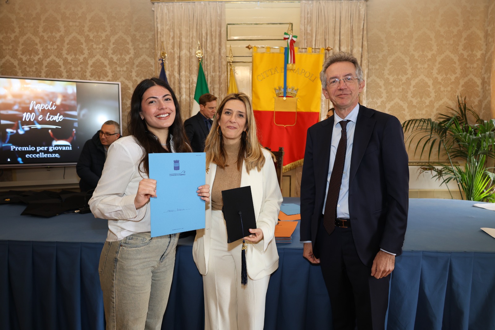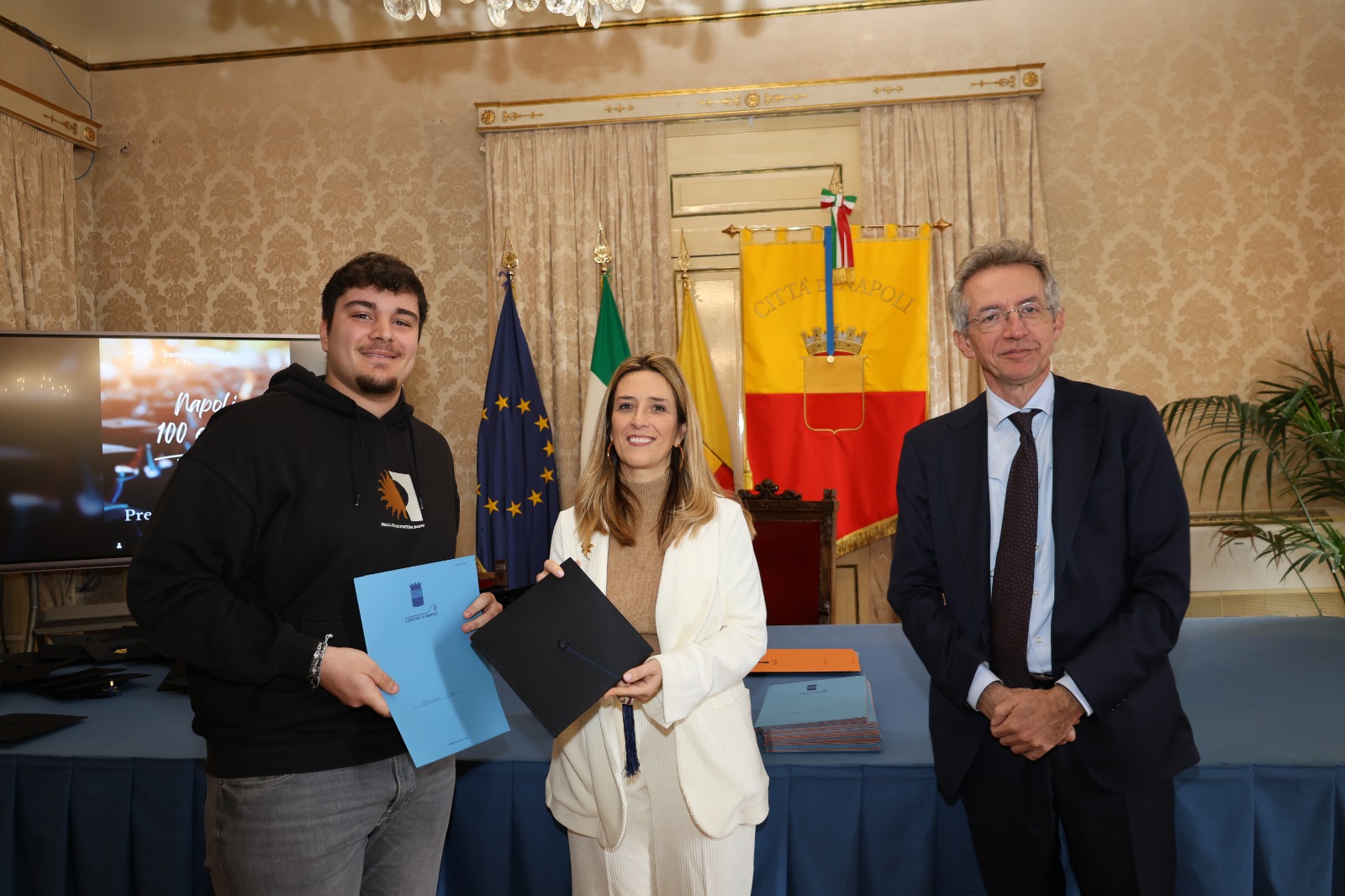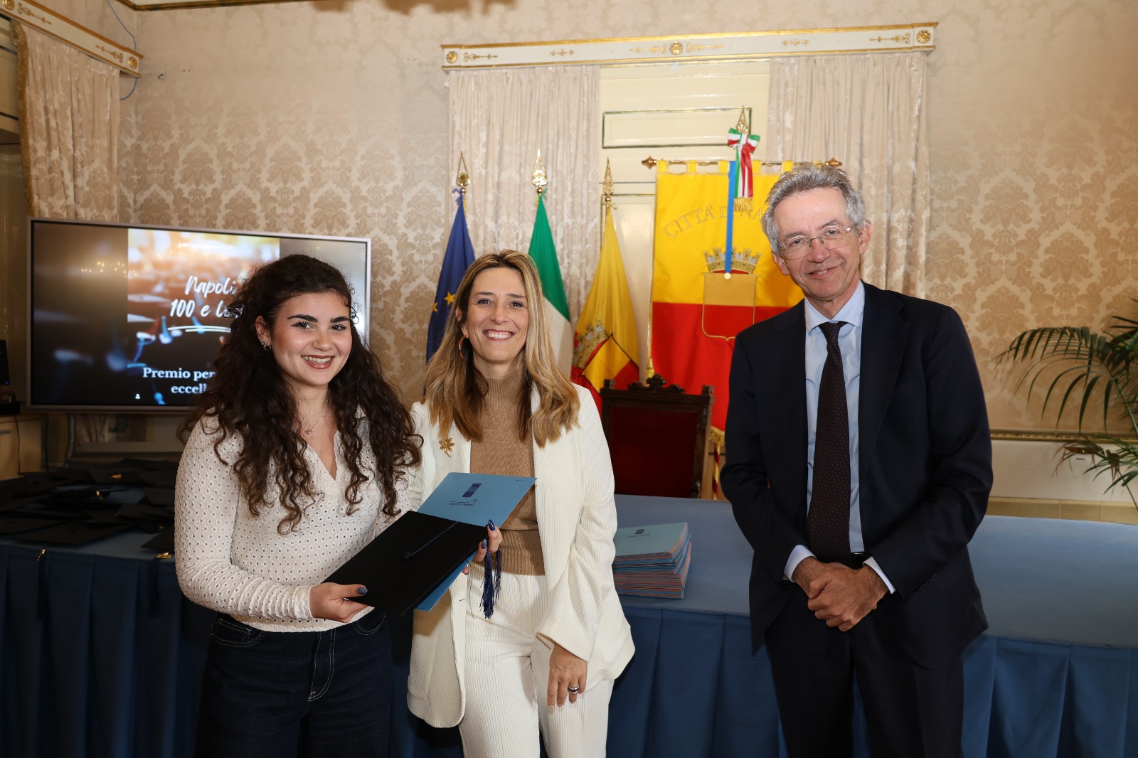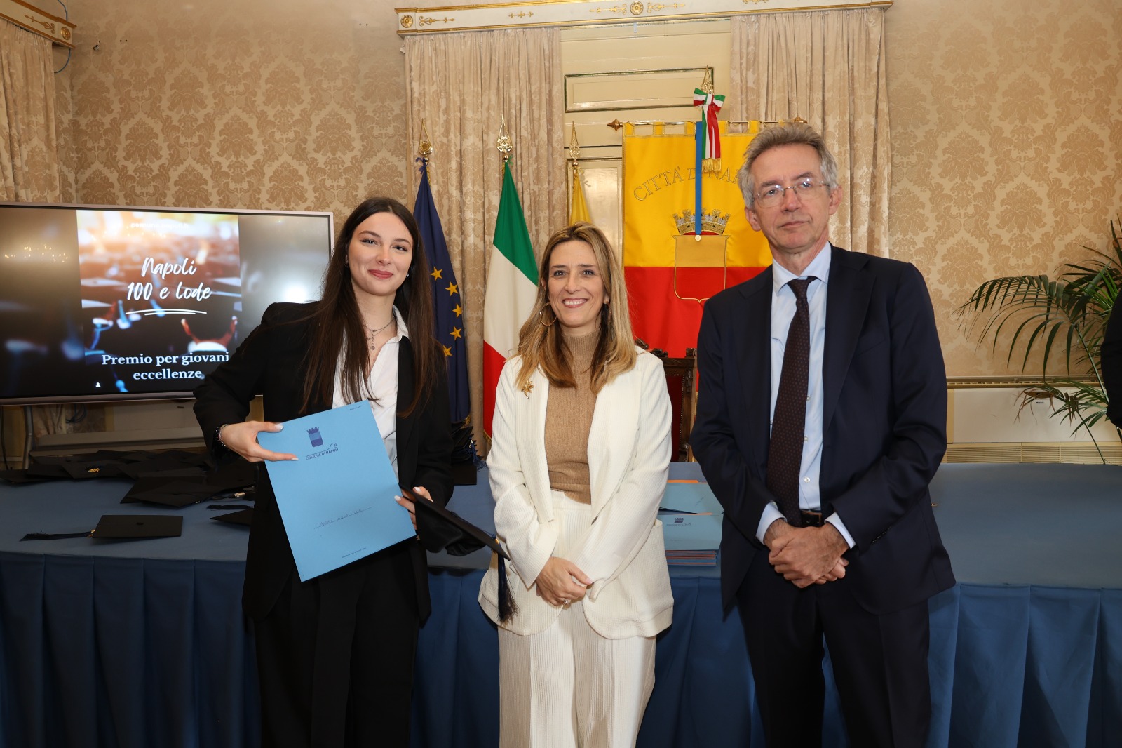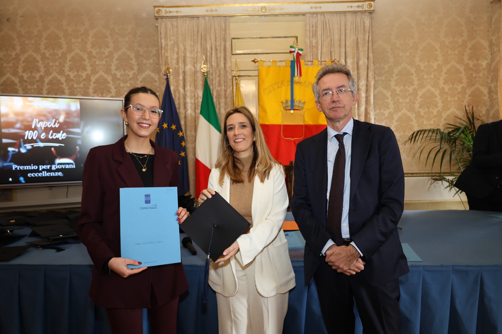 “Oggi non premiamo solo un voto eccellente, ma il sacrificio e la passione di una generazione che rappresenta il motore del futuro di Napoli. Vedere tanti giovani talenti riuniti in questa Sala Giunta – ha sottolineato l’assessora Marciani – ci conferma che investire sul merito è la strada giusta per favorire la partecipazione attiva dei nostri ragazzi alla vita della comunità. Con il premio ‘Napoli CENTOELODE’, l’Amministrazione intende dare un segnale concreto di vicinanza: vogliamo che questi studenti sentano che la loro città riconosce il loro valore e li sostiene nel percorso universitario o professionale che hanno intrapreso. Il nostro obiettivo è continuare a fornire strumenti che valorizzino le capacità individuali come elemento essenziale per lo sviluppo civile ed economico del nostro territorio”.