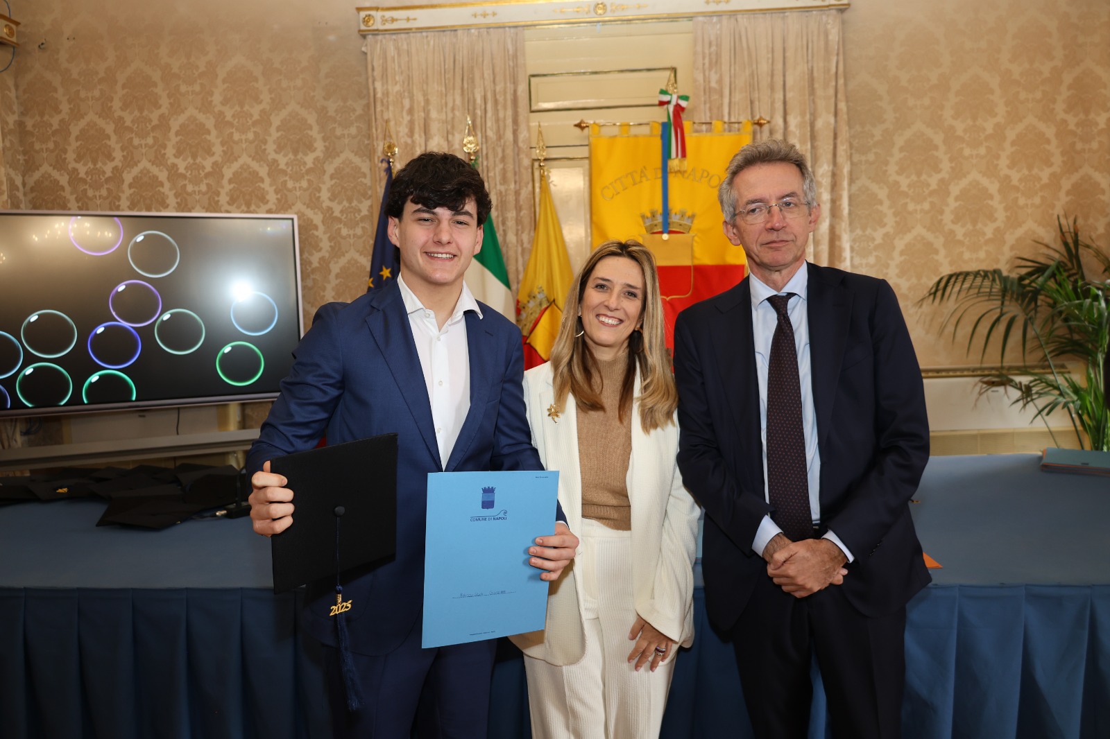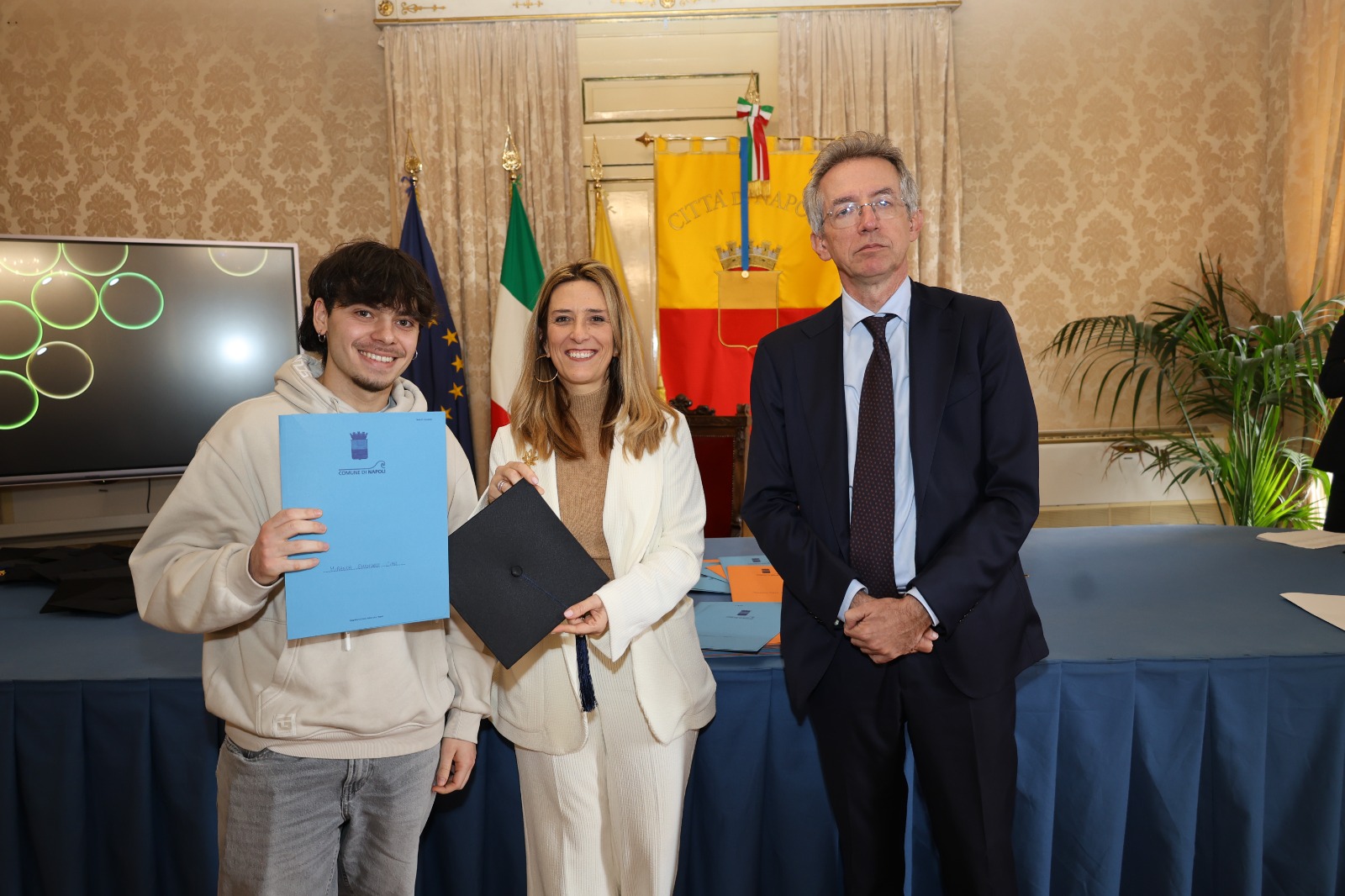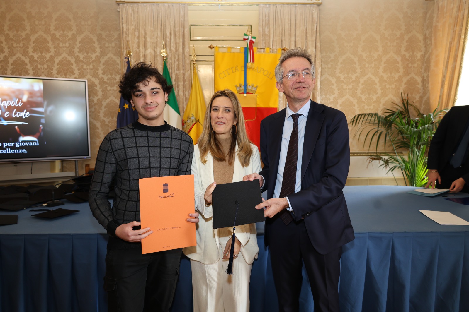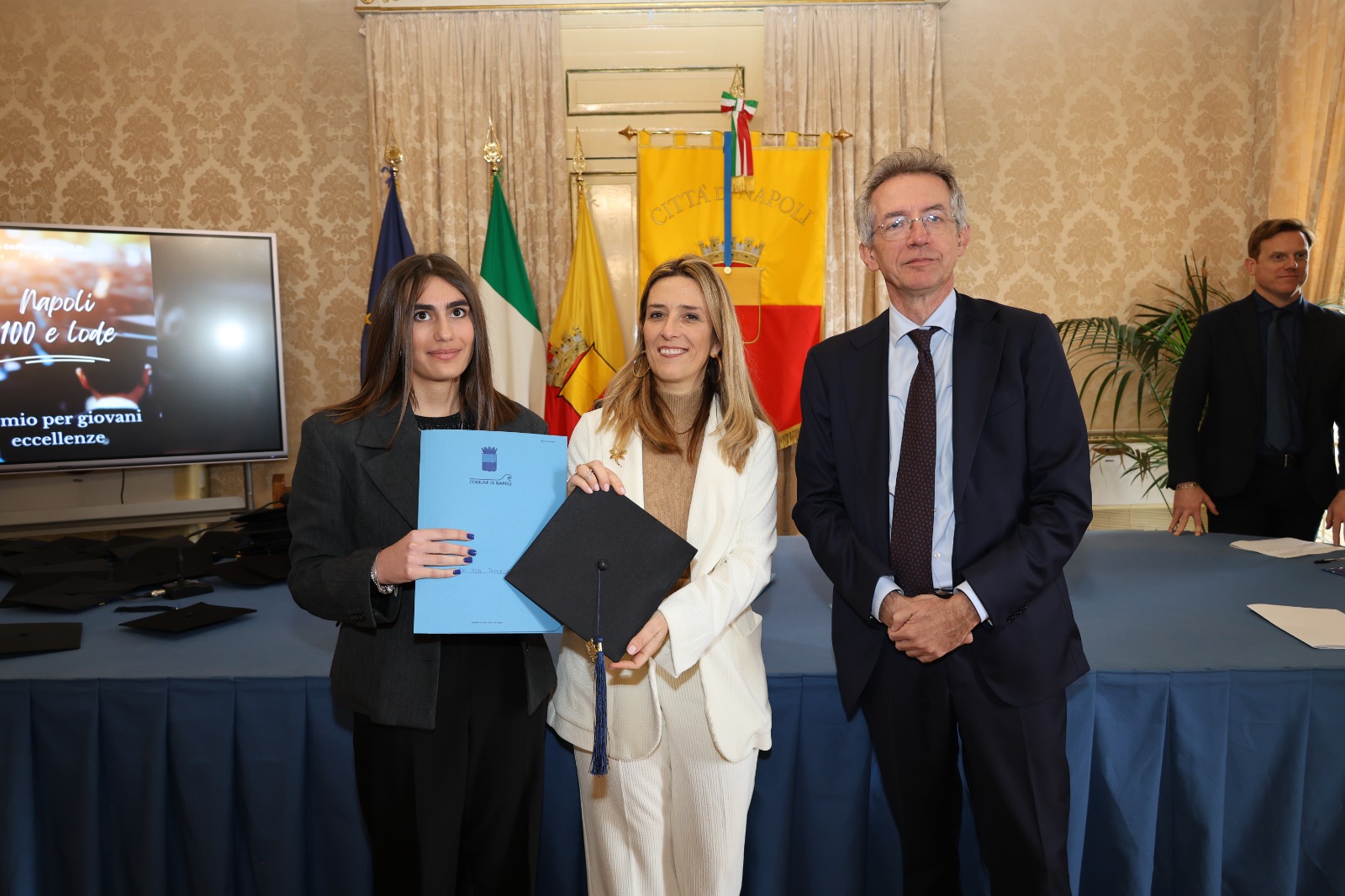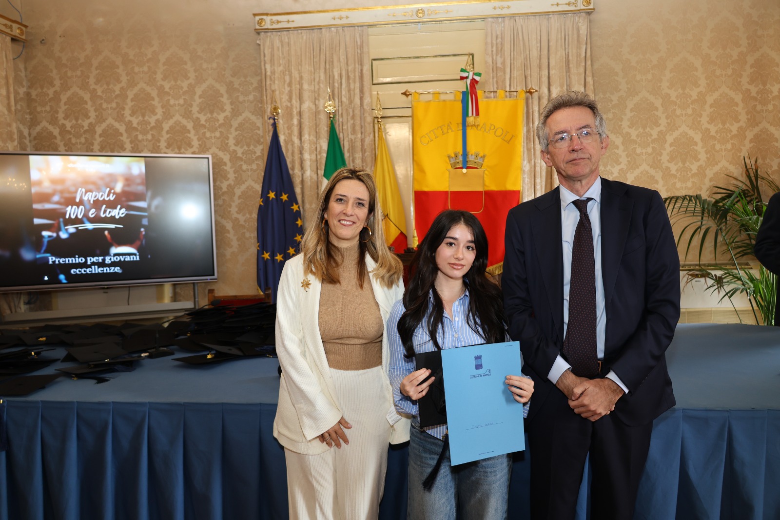 “Oggi non premiamo solo un voto eccellente, ma il sacrificio e la passione di una generazione che rappresenta il motore del futuro di Napoli. Vedere tanti giovani talenti riuniti in questa Sala Giunta – ha sottolineato l’assessora Marciani – ci conferma che investire sul merito è la strada giusta per favorire la partecipazione attiva dei nostri ragazzi alla vita della comunità. Con il premio ‘Napoli CENTOELODE’, l’Amministrazione intende dare un segnale concreto di vicinanza: vogliamo che questi studenti sentano che la loro città riconosce il loro valore e li sostiene nel percorso universitario o professionale che hanno intrapreso. Il nostro obiettivo è continuare a fornire strumenti che valorizzino le capacità individuali come elemento essenziale per lo sviluppo civile ed economico del nostro territorio”.