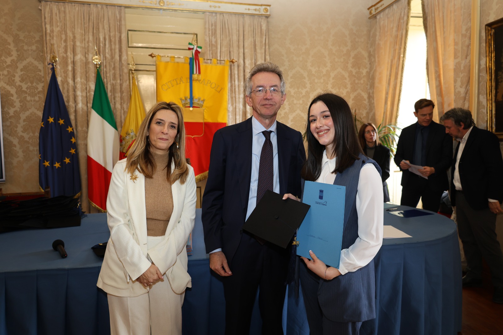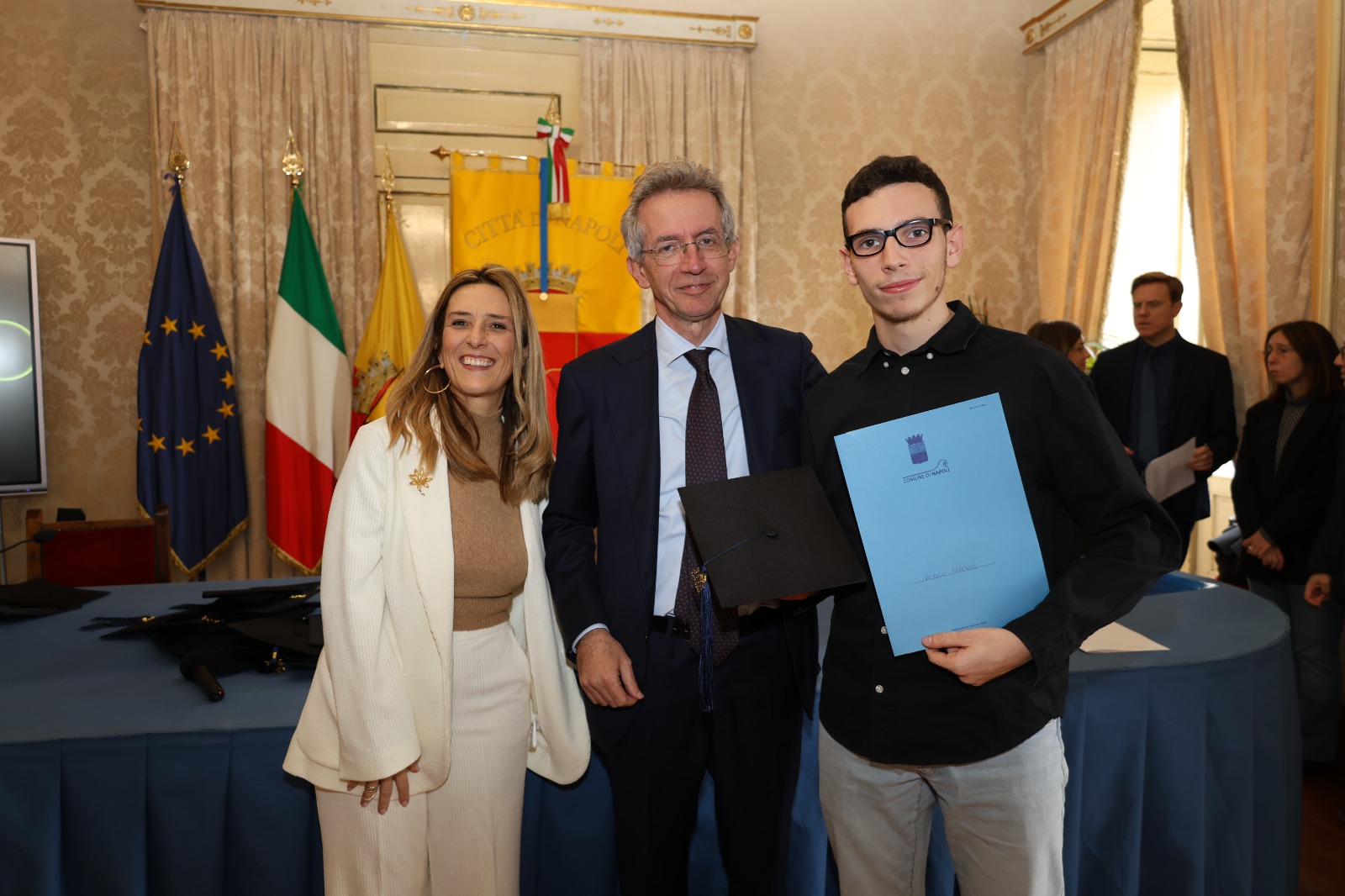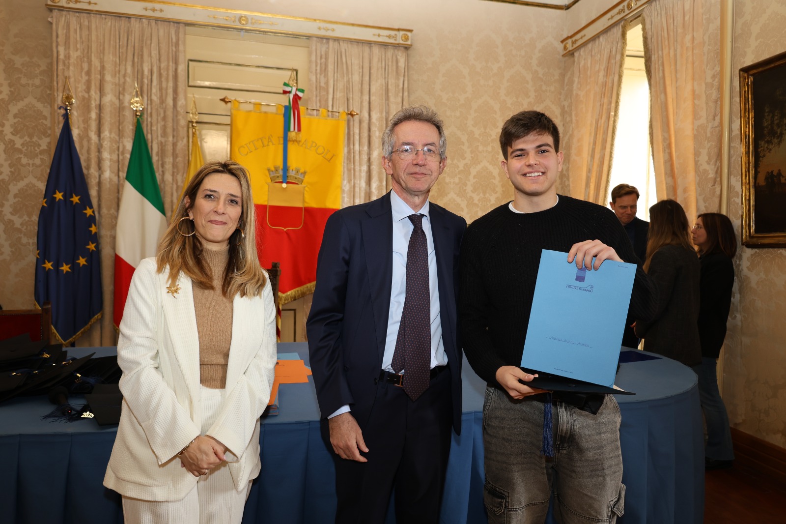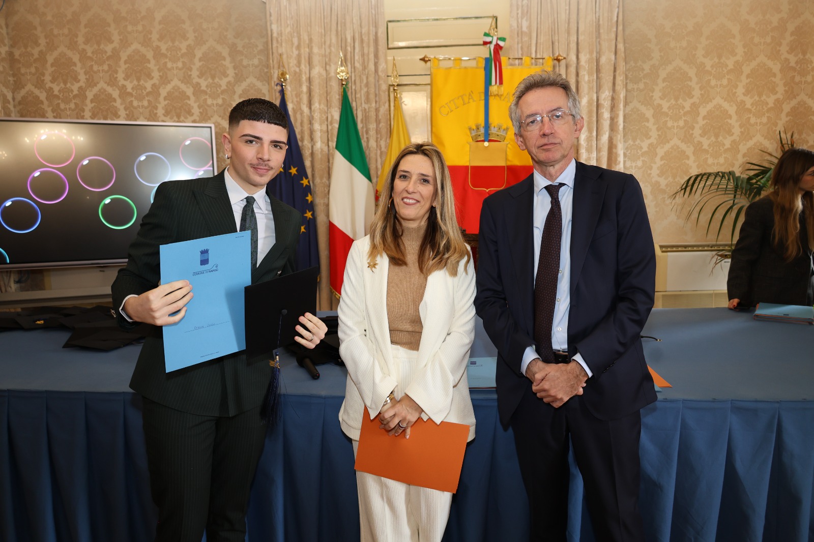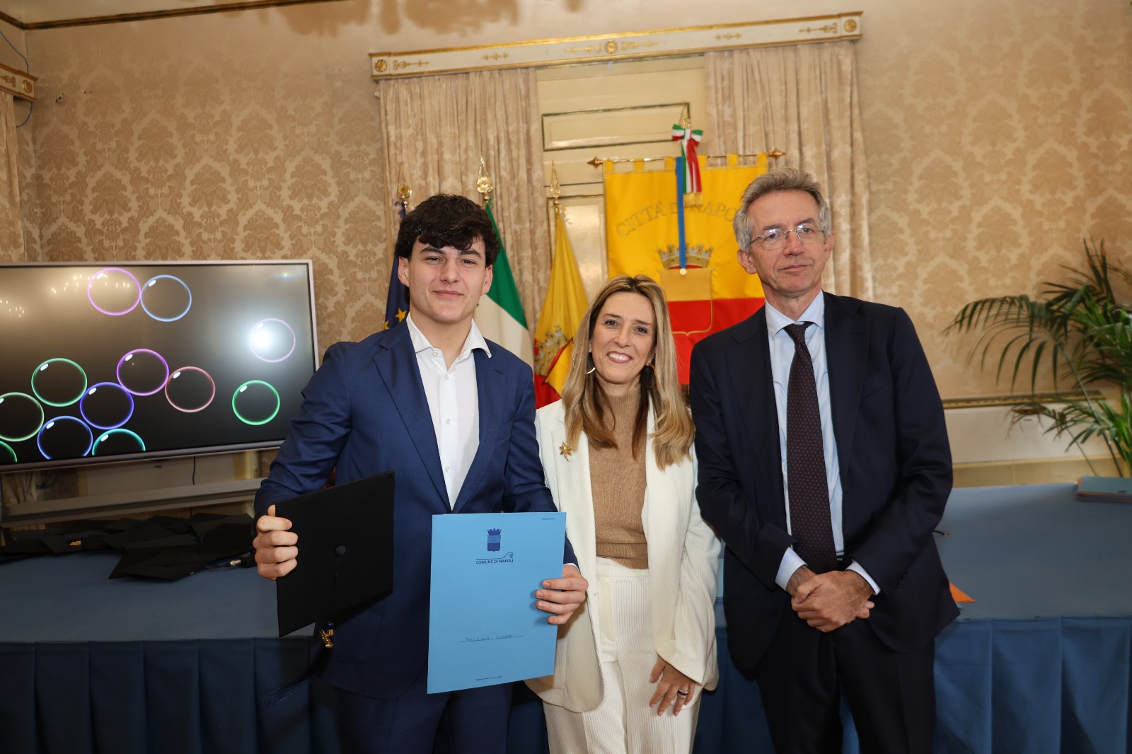 “Oggi non premiamo solo un voto eccellente, ma il sacrificio e la passione di una generazione che rappresenta il motore del futuro di Napoli. Vedere tanti giovani talenti riuniti in questa Sala Giunta – ha sottolineato l’assessora Marciani – ci conferma che investire sul merito è la strada giusta per favorire la partecipazione attiva dei nostri ragazzi alla vita della comunità. Con il premio ‘Napoli CENTOELODE’, l’Amministrazione intende dare un segnale concreto di vicinanza: vogliamo che questi studenti sentano che la loro città riconosce il loro valore e li sostiene nel percorso universitario o professionale che hanno intrapreso. Il nostro obiettivo è continuare a fornire strumenti che valorizzino le capacità individuali come elemento essenziale per lo sviluppo civile ed economico del nostro territorio”.