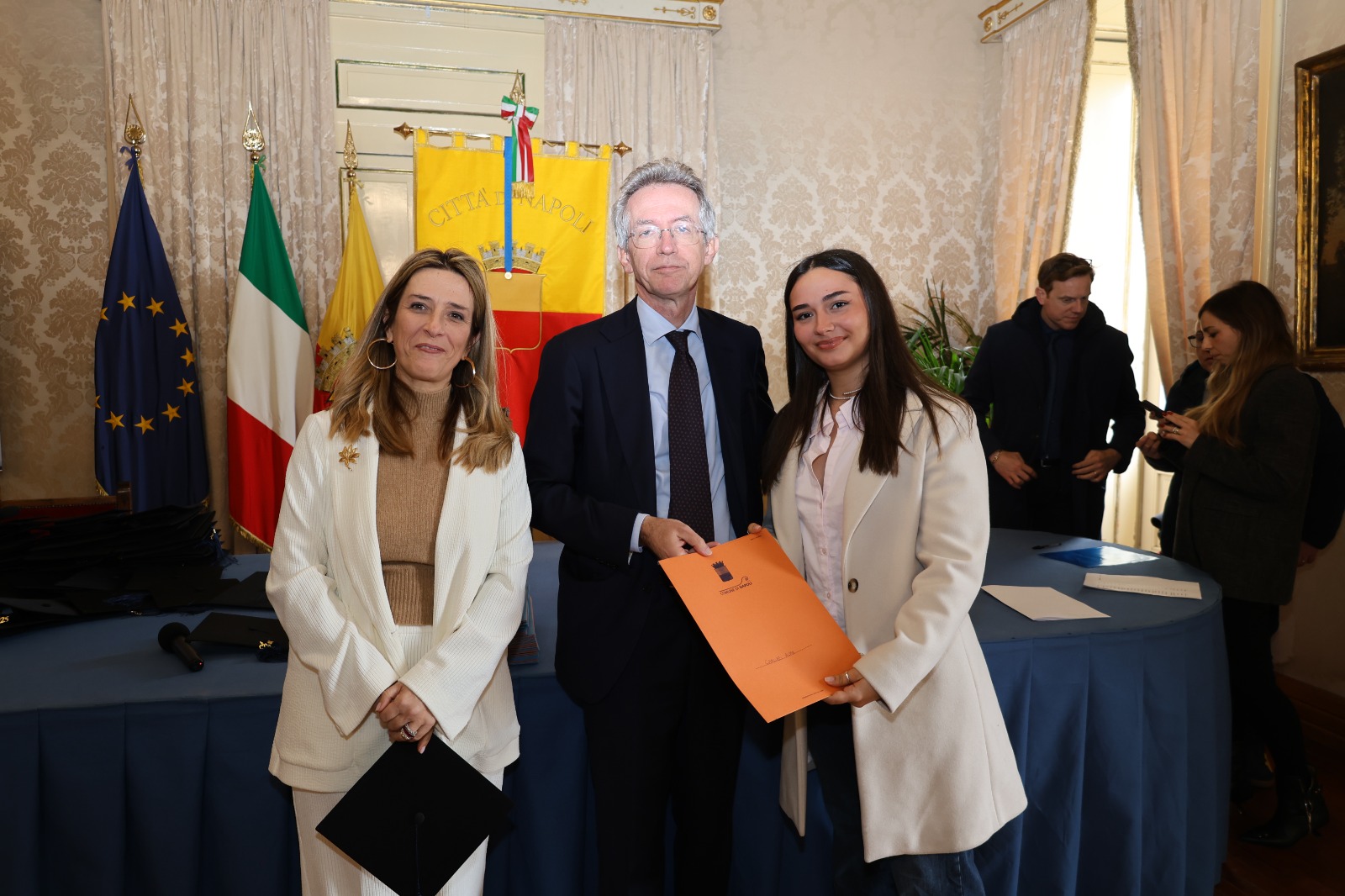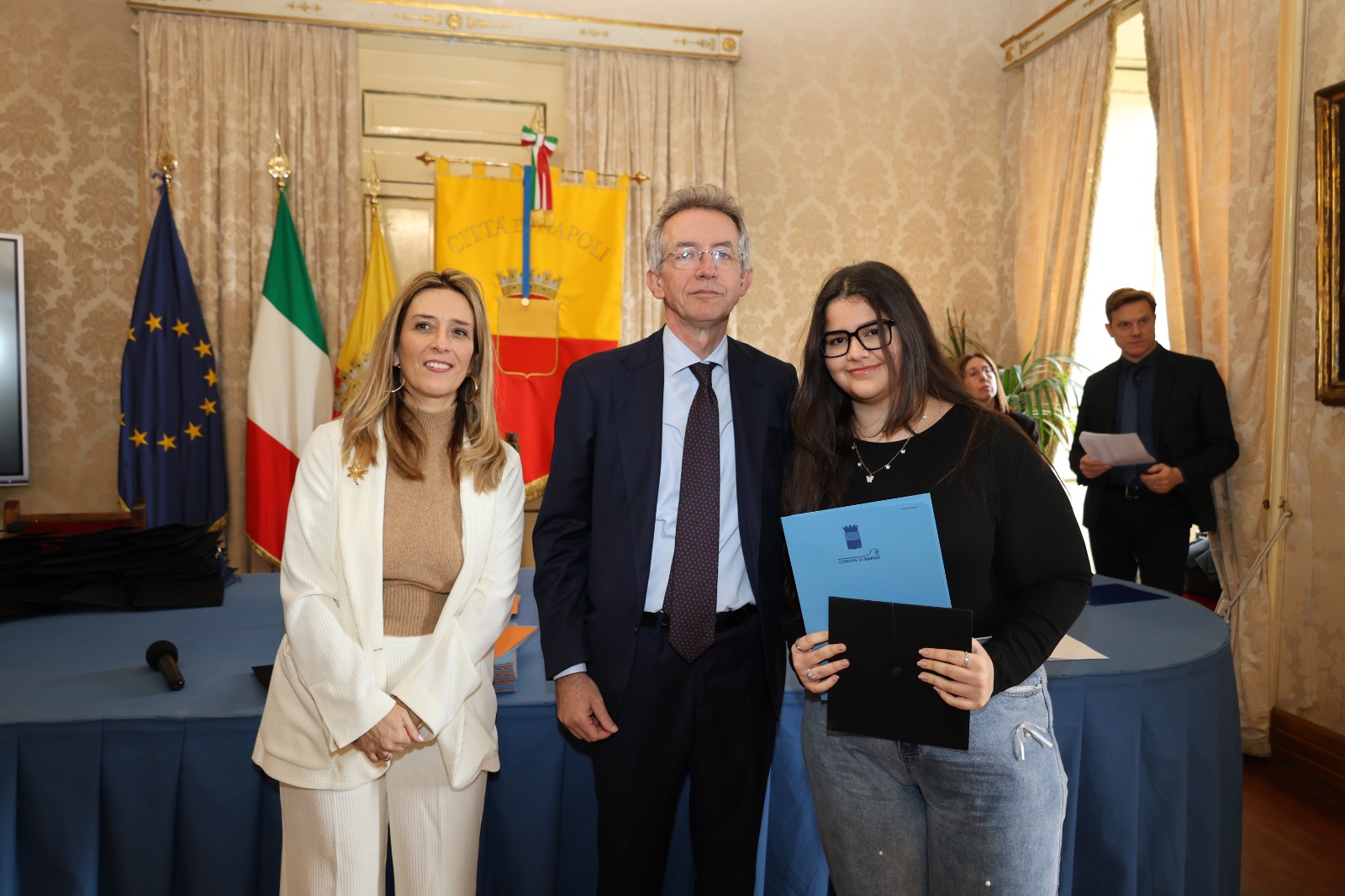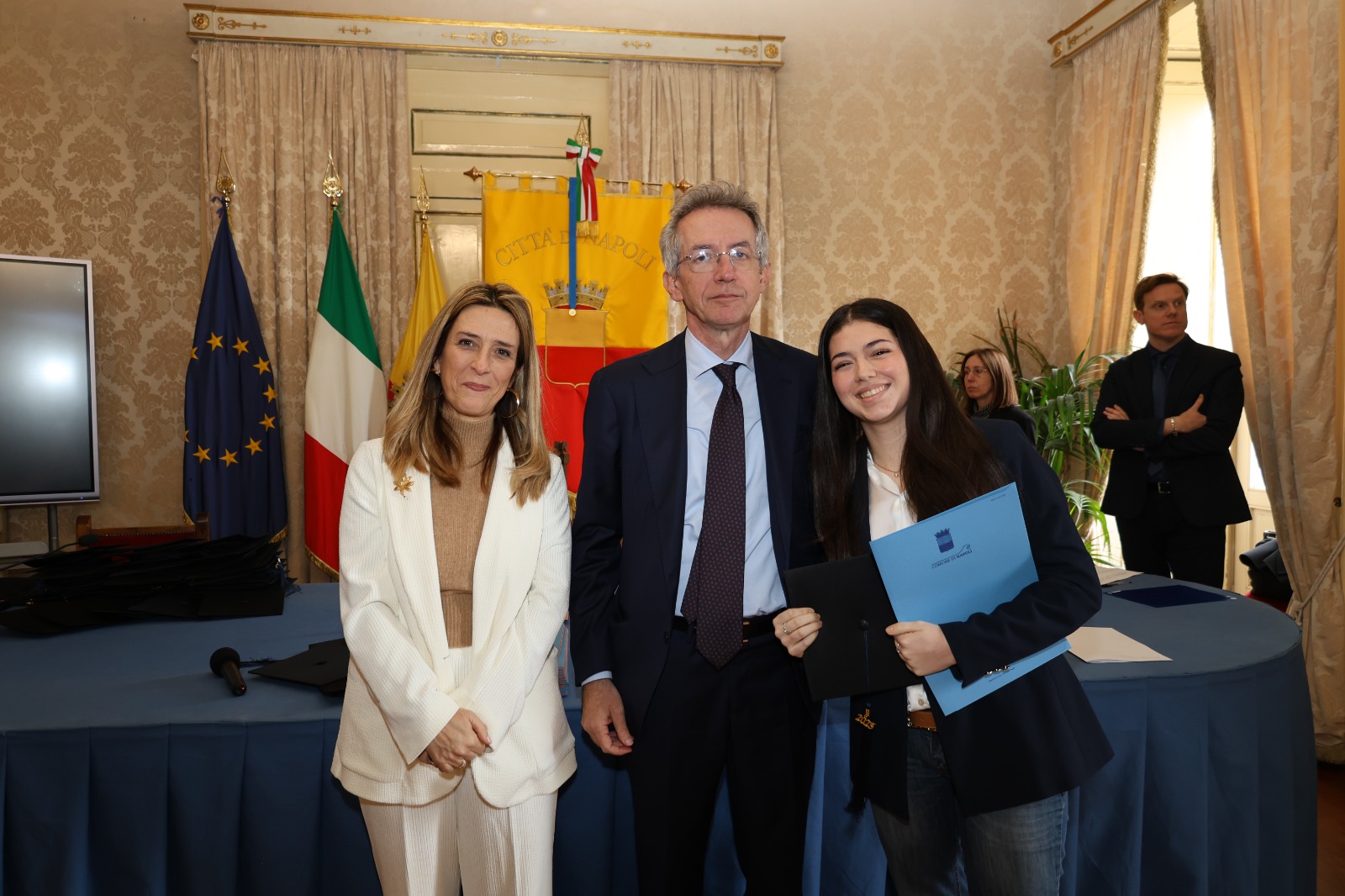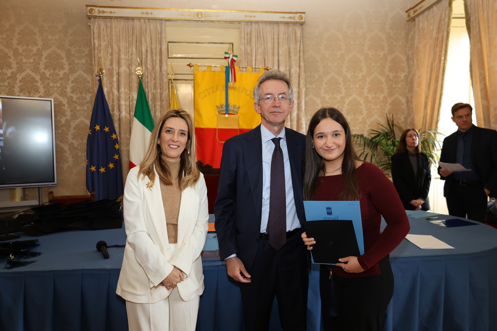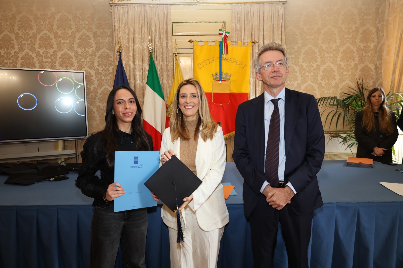 “Oggi non premiamo solo un voto eccellente, ma il sacrificio e la passione di una generazione che rappresenta il motore del futuro di Napoli. Vedere tanti giovani talenti riuniti in questa Sala Giunta – ha sottolineato l’assessora Marciani – ci conferma che investire sul merito è la strada giusta per favorire la partecipazione attiva dei nostri ragazzi alla vita della comunità. Con il premio ‘Napoli CENTOELODE’, l’Amministrazione intende dare un segnale concreto di vicinanza: vogliamo che questi studenti sentano che la loro città riconosce il loro valore e li sostiene nel percorso universitario o professionale che hanno intrapreso. Il nostro obiettivo è continuare a fornire strumenti che valorizzino le capacità individuali come elemento essenziale per lo sviluppo civile ed economico del nostro territorio”.