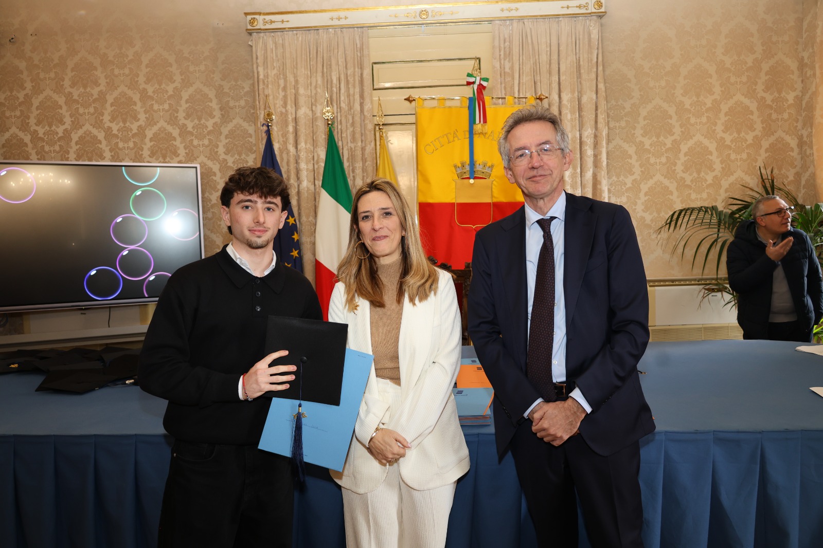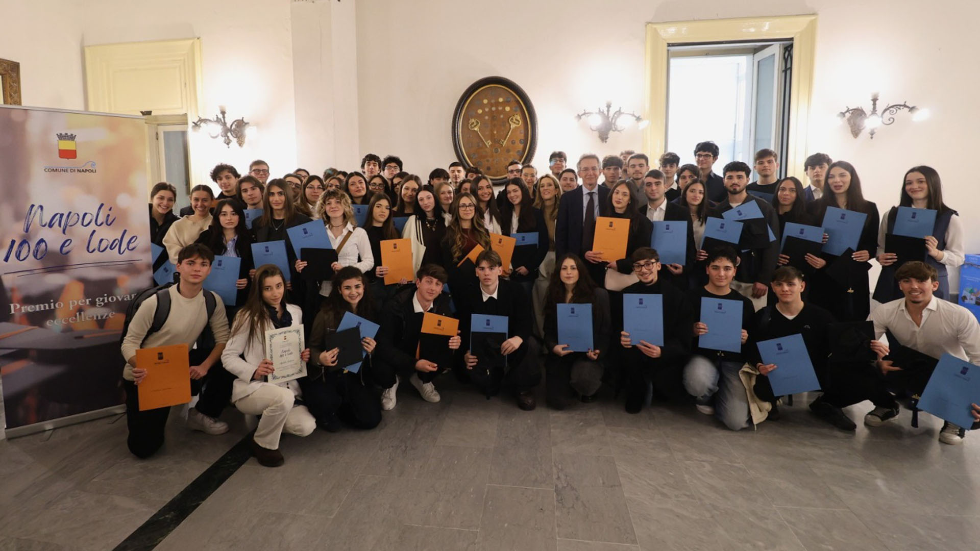 Si è tenuta questo pomeriggio, nella Sala Giunta di Palazzo San Giacomo, la cerimonia di premiazione dell’edizione 2025 di "Napoli CENTOELODE". L'iniziativa, promossa dall’Assessorato ai Giovani e al Lavoro del Comune di Napoli, ha celebrato il merito e l’impegno di 96 giovani studenti napoletani che hanno conseguito il diploma di maturità con il massimo dei voti e la lode nell'anno scolastico 2024/2025. Durante l'evento, i ragazzi hanno ricevuto la pergamena celebrativa. Ai vincitori è stato assegnato un premio economico (borsa di studio) del valore indicativo di 120,00 euro lordi, finanziato interamente dal Bilancio comunale.