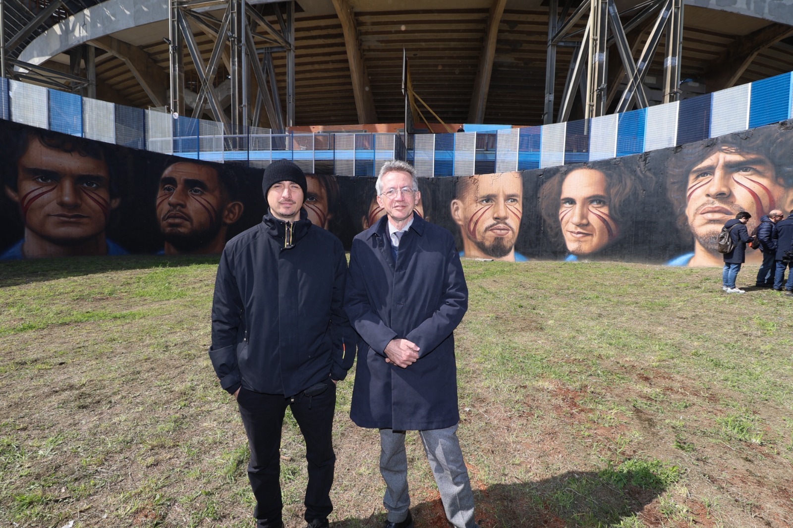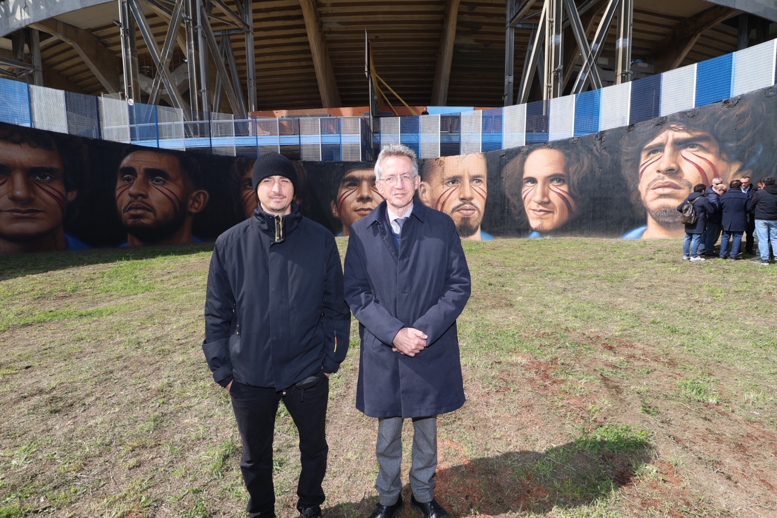 «Questo murale è un omaggio che Jorit ha voluto fare alla città e alla storia della squadra – ha affermato il sindaco Gaetano Manfredi – È un modo per ricordare tanti campioni che hanno contribuito ai successi del Napoli, ma anche un segnale di riqualificazione dello stadio che rappresenta la casa del calcio a Napoli ed è un patrimonio collettivo. Candideremo il Maradona come sede degli Europei 2032 di calcio. Stiamo lavorando sul progetto per rispettare le richieste dell’Uefa. La cosa più importante è valorizzare il patrimonio dello stadio e renderlo più confortevole e adeguato ai tempi. Se saremo selezionati, ci faremo trovare pronti».