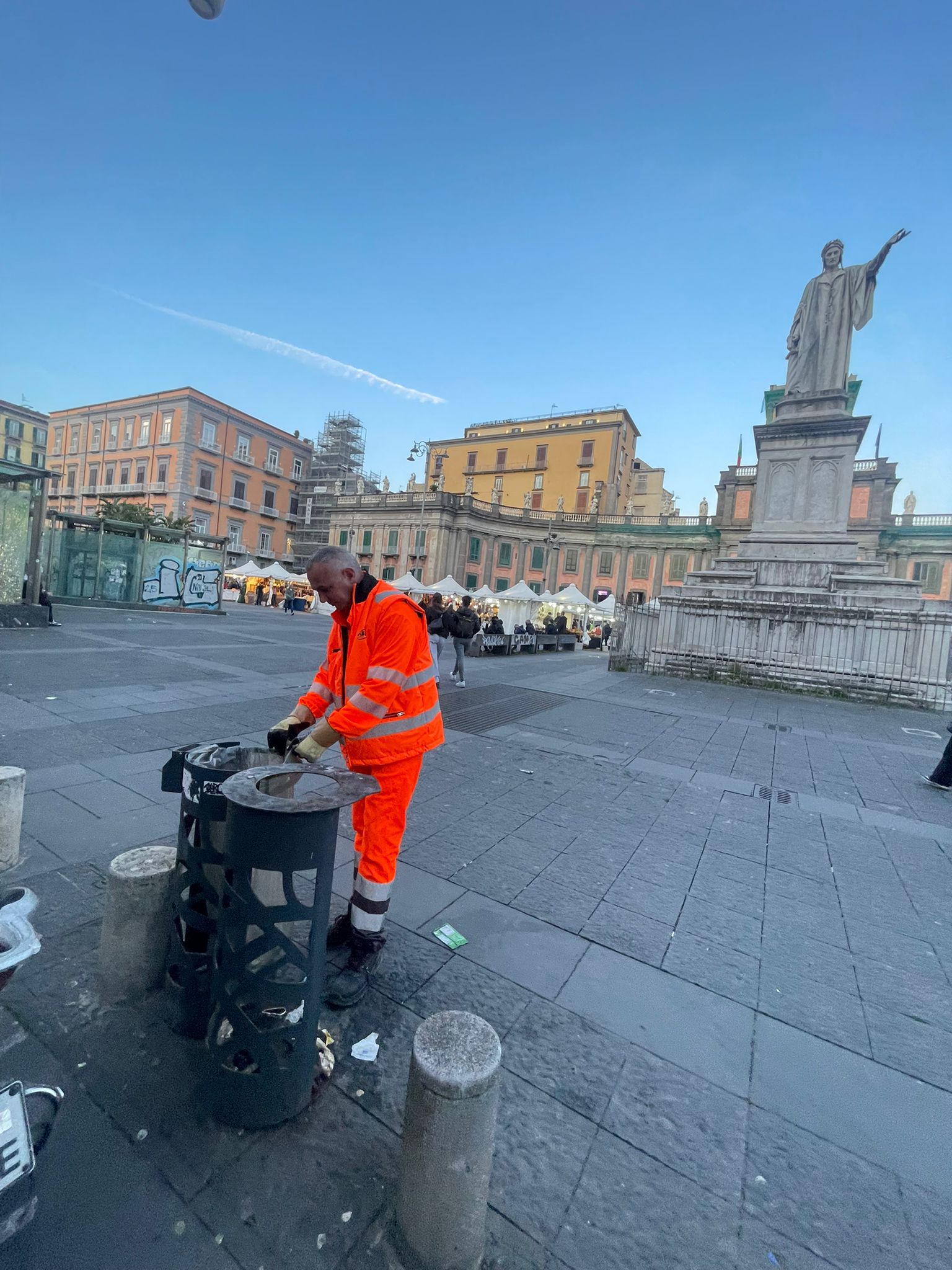 Napoli Servizi: Ha garantito la pulizia e il decoro dei grandi monumenti e dei passaggi storici (Galleria Umberto I, Galleria Principe e porticati di Piazza del Plebiscito) impiegando 30 unità dedicate tra addetti alle pulizie e operatori del PIS (Pronto Intervento Stradale), quest’ultimi attivi su tre turni a supporto della Protezione Civile.