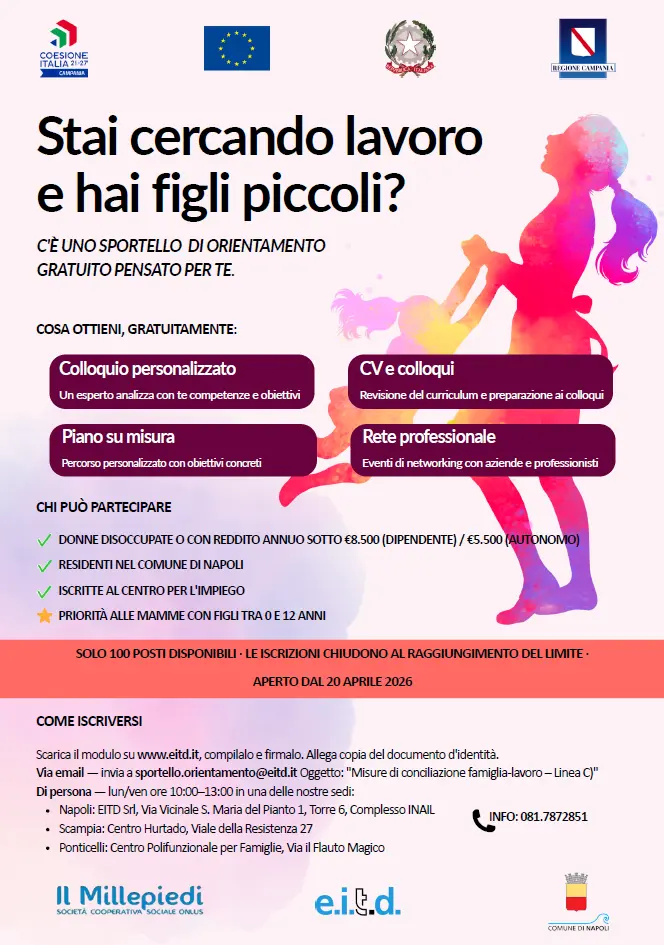 Le attività saranno realizzate da E.I.T.D. Srl nell’ambito della Linea C) del progetto “Misure di conciliazione famiglia–lavoro”, finanziato dalla Regione Campania attraverso il PR FSE+ 2021– 2027, e mirano a fornire un sostegno integrato e personalizzato alle beneficiarie, rafforzando le competenze professionali e le opportunità di inserimento nel mercato del lavoro.