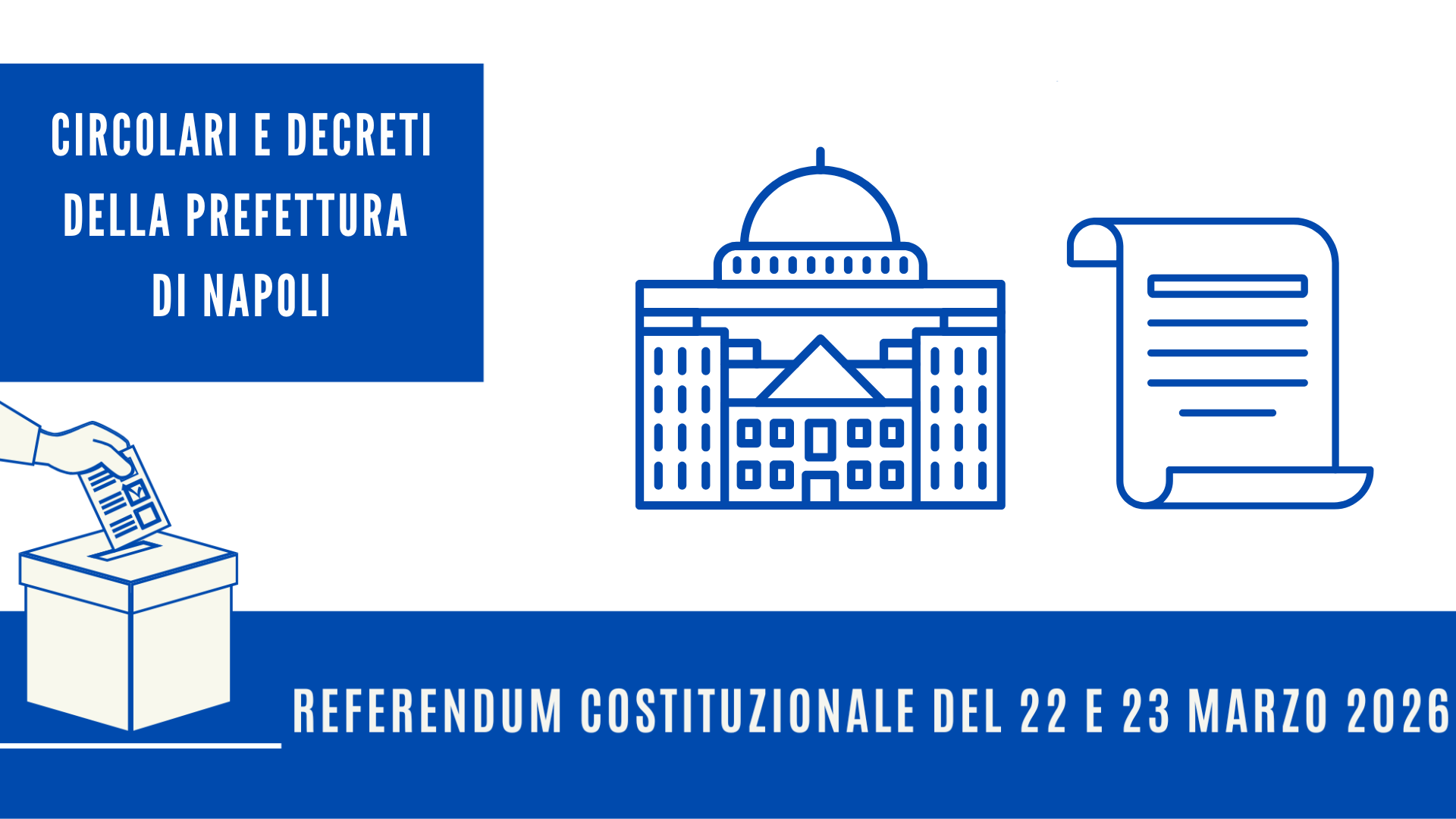 - Circolare n. 1 avente ad oggetto: “Consultazioni elettorali e referendarie di domenica 22 e lunedì 23 marzo 2026. Referendum popolare confermativo della legge costituzionale recante norme in materia di ordinamento giurisdizionale e di istituzione della Corte disciplinare approvata dal Parlamento e pubblicata nella Gazzetta Ufficiale della Repubblica italiana n. 253 del 30 ottobre 2025…”