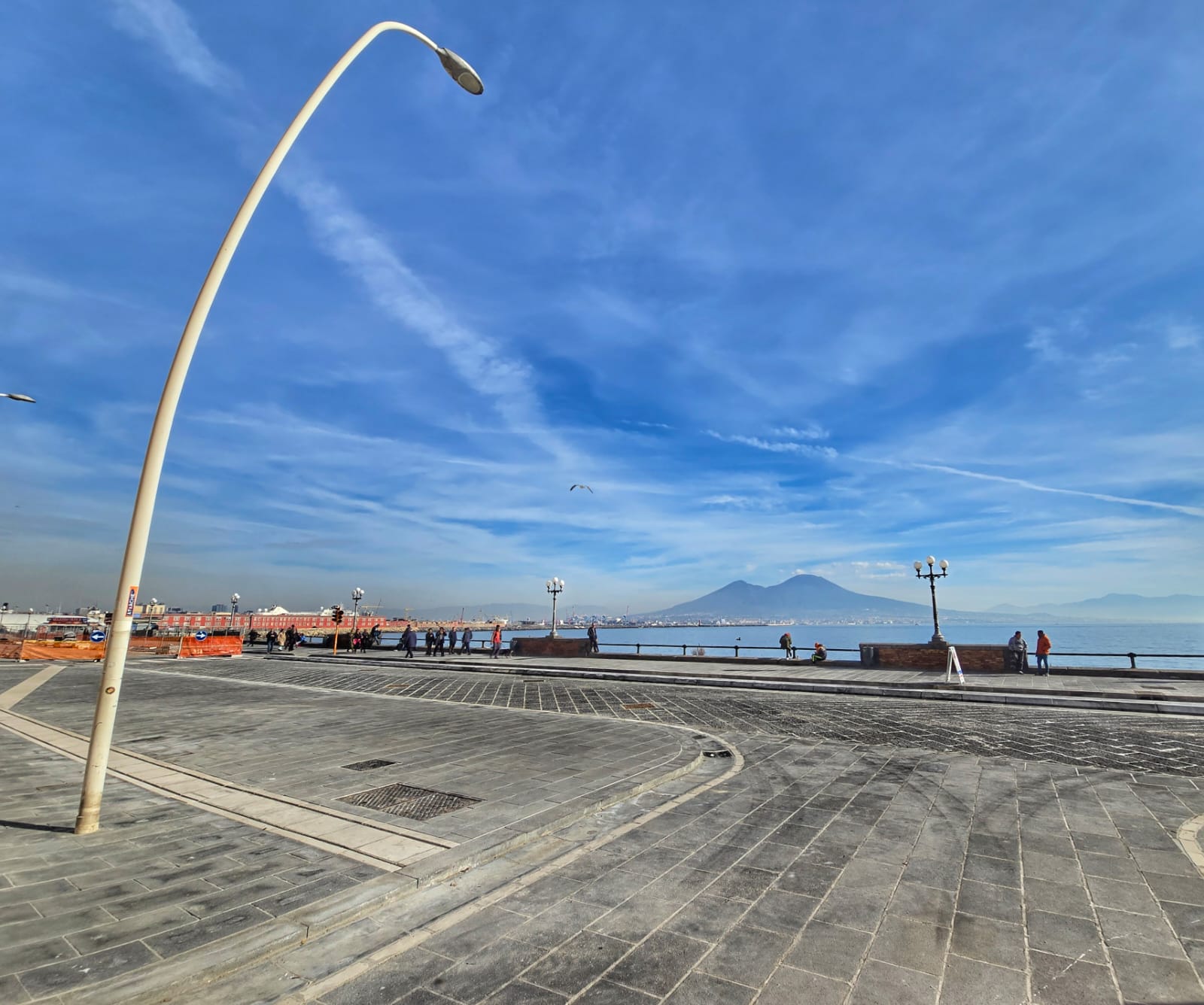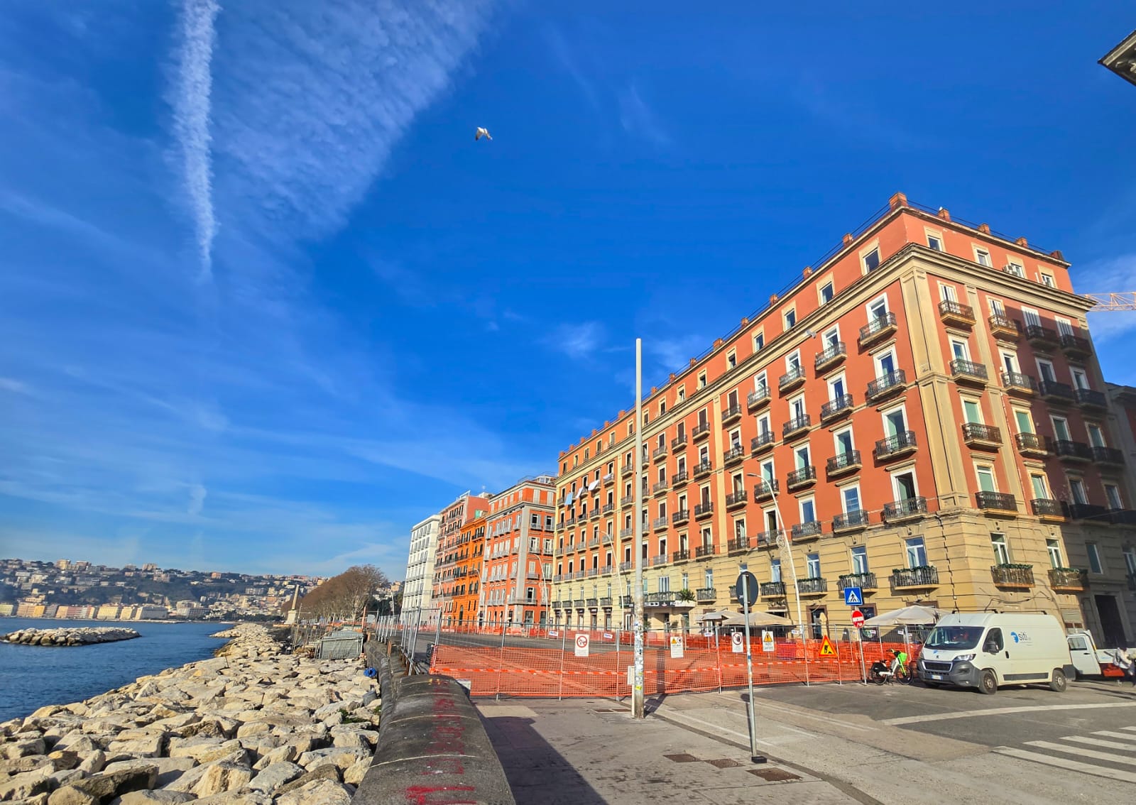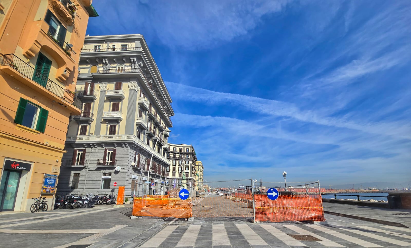 È partita la nuova fase di lavori sul lungomare con l’ampliamento del cantiere da piazza Vittoria in direzione di via Partenope: smontati i gazebo dei locali per consentire il rifacimento dei marciapiedi.