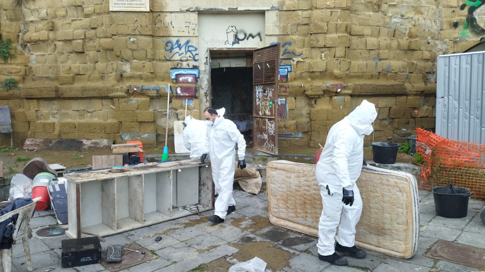 Le operazioni sono risultate più complesse del previsto poiché si è reso necessario liberare anche due locali di proprietà comunale, colmi di rifiuti e occupati da tempo. I locali, pieni di masserizie e materiali di ogni genere tra cui, materassi, televisori, reti da letto, mobili e bottiglie di vetro, sono stati svuotati e ripuliti dal personale di Napoli Servizi, mentre gli operatori di Asia hanno conferito in discarica diverse tonnellate di rifiuti ingombranti. Una volta liberati, i locali sono stati murati per prevenire nuove intrusioni.