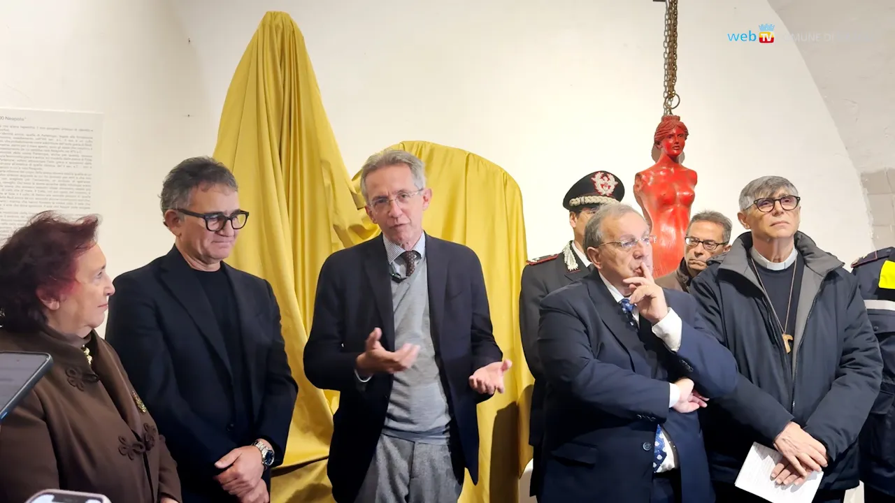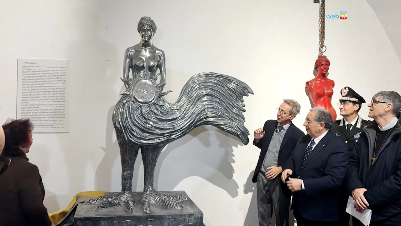 È la Sirena Parthenope, scultura in alluminio dal volto femminile e le zampe di un gallo, l'opera dedicata dal maestro Lello Esposito ai 2500 anni della città. Svelata questa mattina presso le Scuderie di Palazzo Sansevero, la scultura accoglierà i visitatori dal belvedere di Monte Echia.