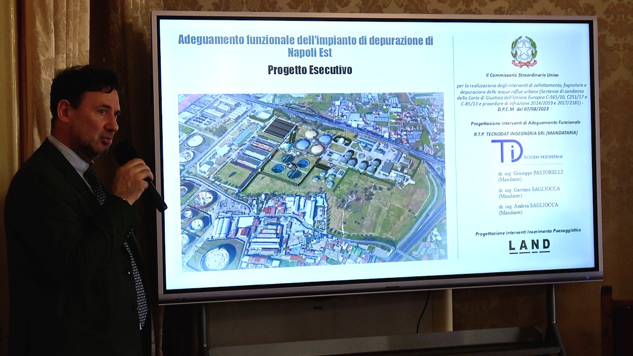 Il progetto esecutivo per potenziare la depurazione delle acque nell’area di Napoli Est è stato presentato questa mattina a Palazzo San Giacomo. Basato su processi biologici avanzati, l’intervento costerà 111 milioni di euro per servire 860mila abitanti in 14 comuni. La procedura per assegnare i lavori è stata indetta da Invitalia e aggiudicata a un raggruppamento d’imprese guidato dalla spagnola Acciona Agua.