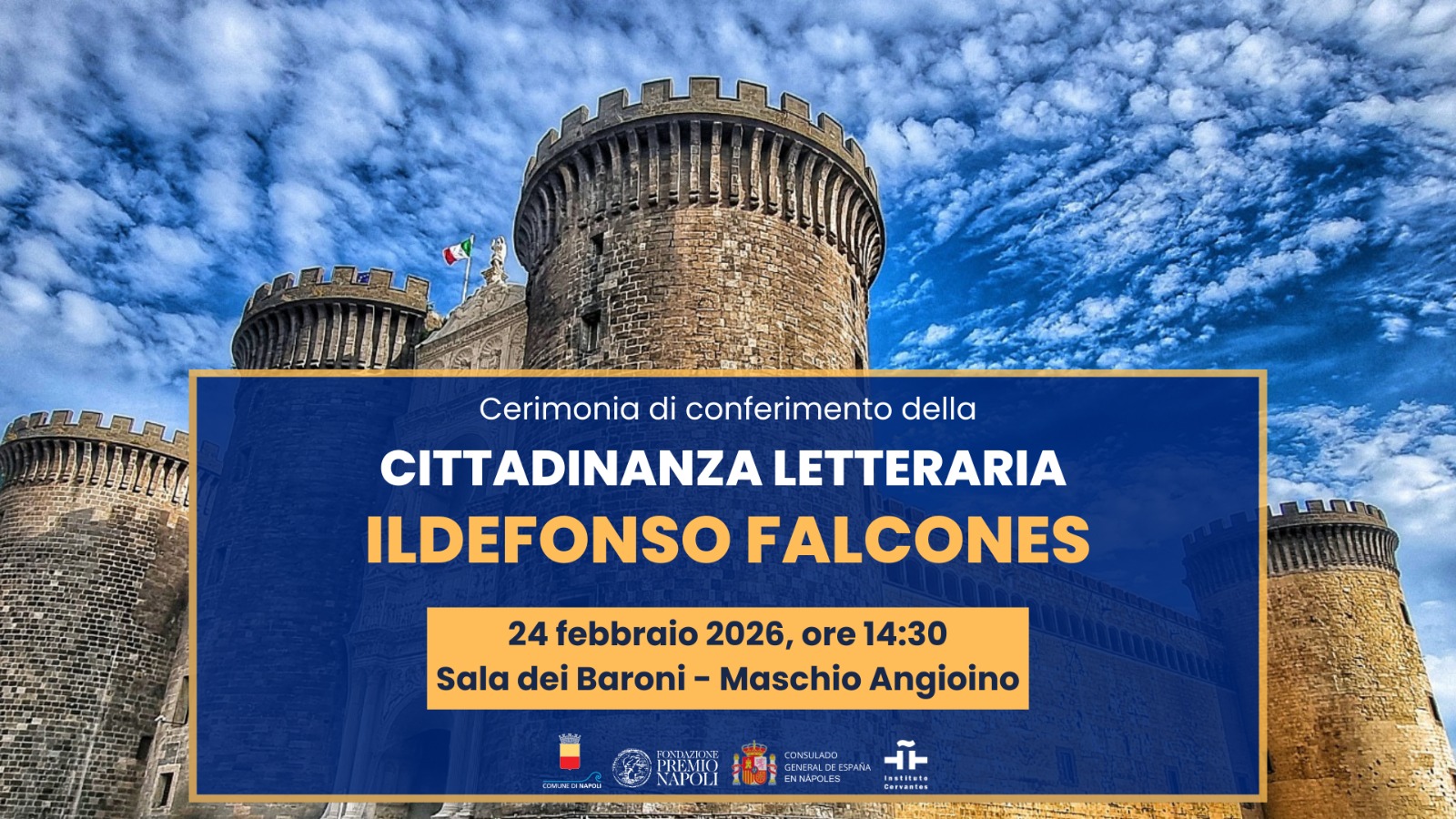 Martedì 24 febbraio, alle ore 14:30, nella Sala dei Baroni del Maschio Angioino, la Città di Napoli renderà omaggio allo scrittore spagnolo Ildefonso Falcones per aver raccontato l'anima profonda di Napoli e il suo patrimonio culturale a tutto il mondo.
