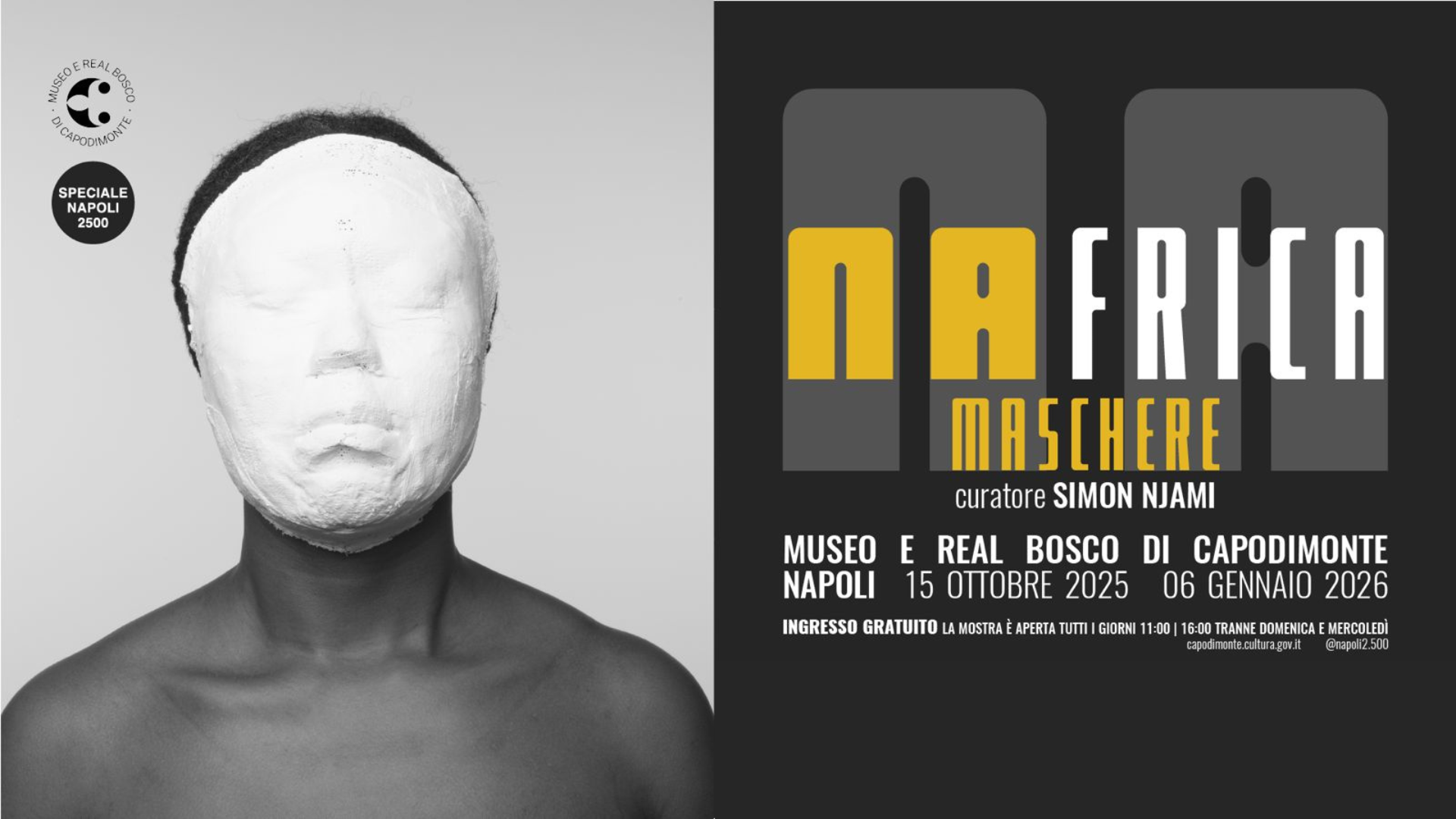 Nell’ambito delle celebrazioni Napoli2500 con la direzione artistica di Laura Valente, il Comune e il Museo e Real Bosco di Capodimonte, diretto da Eike Schmidt, ospiteranno la mostra NAFRICA-MASCHERE a cura di Simon Njami e prodotta da Andrea Aragosa per Black tarantella. L’appuntamento è realizzato in collaborazione con il Ministero della Cultura, Dipartimento Valorizzazione Patrimonio Culturale; l’Università Federico II di Napoli; l’Università L’Orientale e MUCIV, Museo delle Civiltà. La mostra affronta le radici irrisolte del colonialismo italiano in Africa, interrogando il rapporto tra memoria, identità e i linguaggi dell’arte contemporanea.