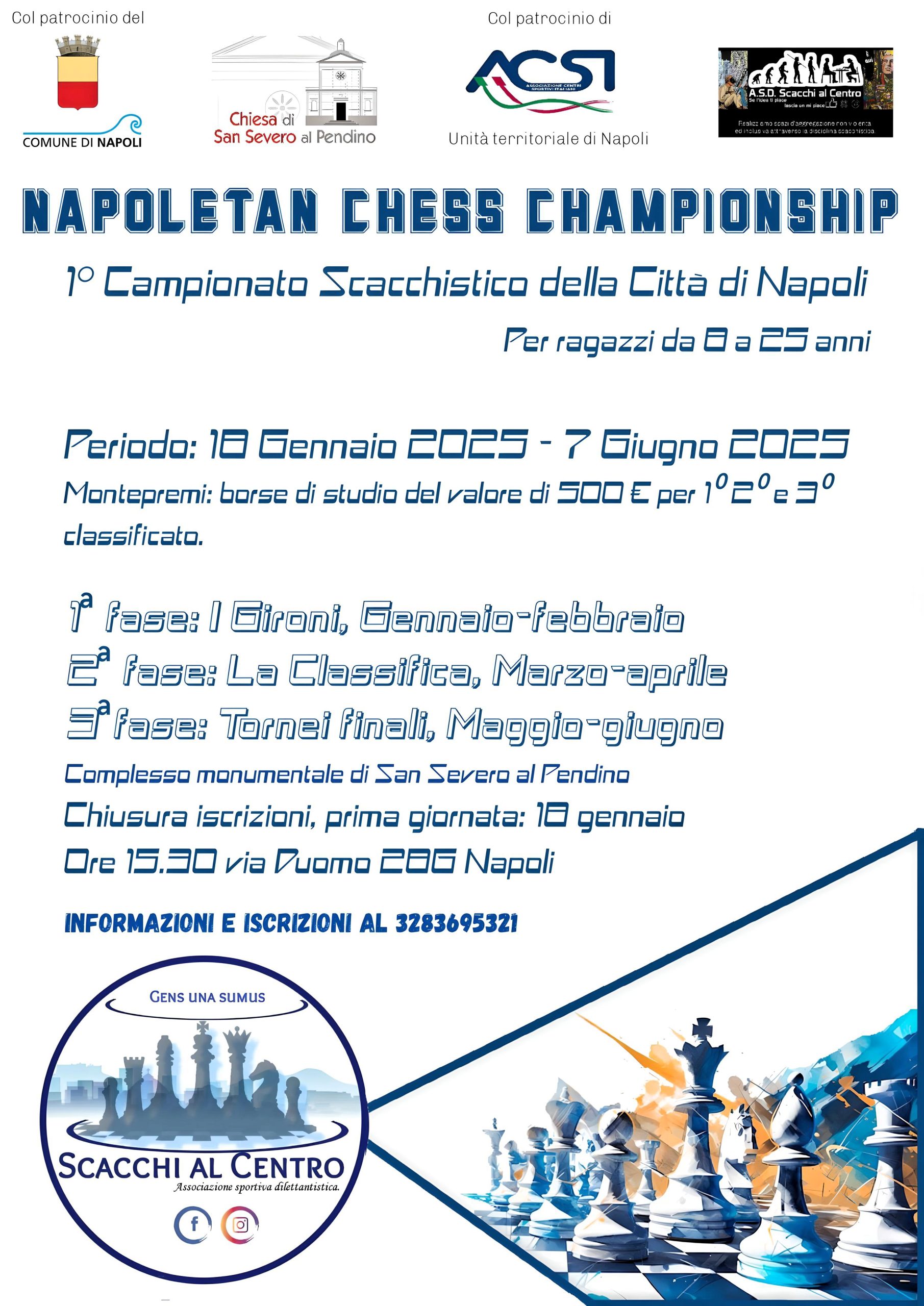 Gli iscritti dovranno essere di età compresa tra gli 8 e i 25 anni, mentre per gli over 25 l'associazione propone la figura del "Tutor scacchistico", cioè una persona con più di 25 anni che si iscrive insieme ad un amico/parente con meno di 25 anni e lo segue durante il campionato.