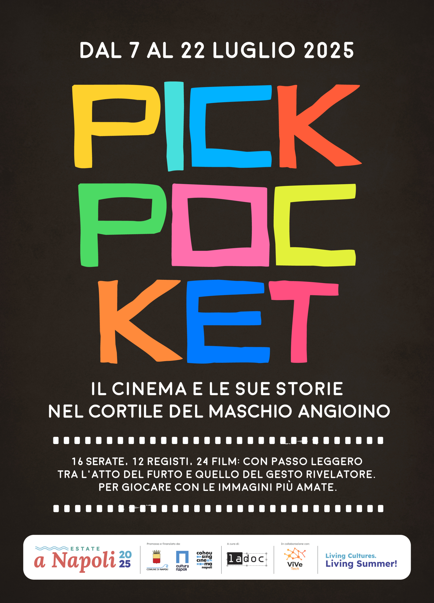 «L’Estate a Napoli si rinnova, e lo fa puntando con forza sulla qualità: teatro, musica e il grande cinema d’autore accompagnano i cittadini in un calendario ricco di appuntamenti pensati per tutte le età. Dopo le spiagge di Mergellina e San Giovanni a Teduccio, che hanno ospitato ‘Arena, il cinema si sposta al Maschio Angioino, monumento simbolo della nostra città, che con Pickpocket torna a essere uno spazio aperto, da vivere insieme ogni sera» dichiara il coordinatore delle politiche culturali del Comune di Napoli Sergio Locoratolo. «La rassegna – prosegue – è realizzata grazie al primo bando pubblico per la promozione della cultura del cinema e dell’audiovisivo. Tra il 2024 e il 2025 sono già 16 i progetti realizzati con il sostegno dell’Amministrazione: festival, rassegne, laboratori e percorsi formativi, che testimoniano un impegno continuativo e strutturato nel tempo, capace di valorizzare il potenziale creativo locale e di mettere in rete le energie migliori del nostro territorio per dar vita a progetti di reale qualità e impatto».