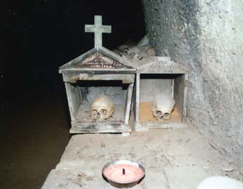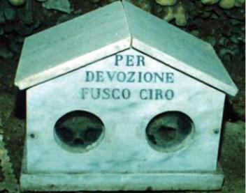 Il corpo di Donna Margherita è mummificato ed il teschio ha la bocca spalancata come di chi sta per vomitare, per cui si dice che la nobildonna sia morta strangolata da uno gnocco. Nell'ordinare le ossa furono messe nella navata retrostante la chiesa quelle provenienti dalle parrocchie e dalle congreghe, per cui essa fu detta "navata dei preti"; la centrale fu chiamata "navata degli appestati" perché in essa erano stati sotterrati questi morti. L'ultima è la "navata dei pezzentelli" perché qui furono accomodate le ossa della gente povera. Così il cimitero entrò nel costume cittadino. Oggi, è insieme un luogo di culto e di macabro fascino, in cui si concentrano anche molte leggende e racconti di miracoli.